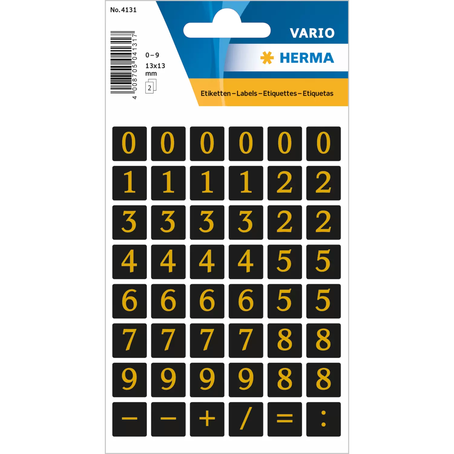 Getallen 13x13 mm 0-9 folie zwart goud preeg 2 vellen