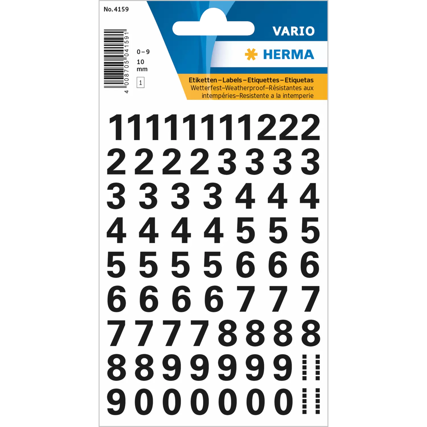 Getallen 10 mm 0-9 watervast folie zwart 1 vel