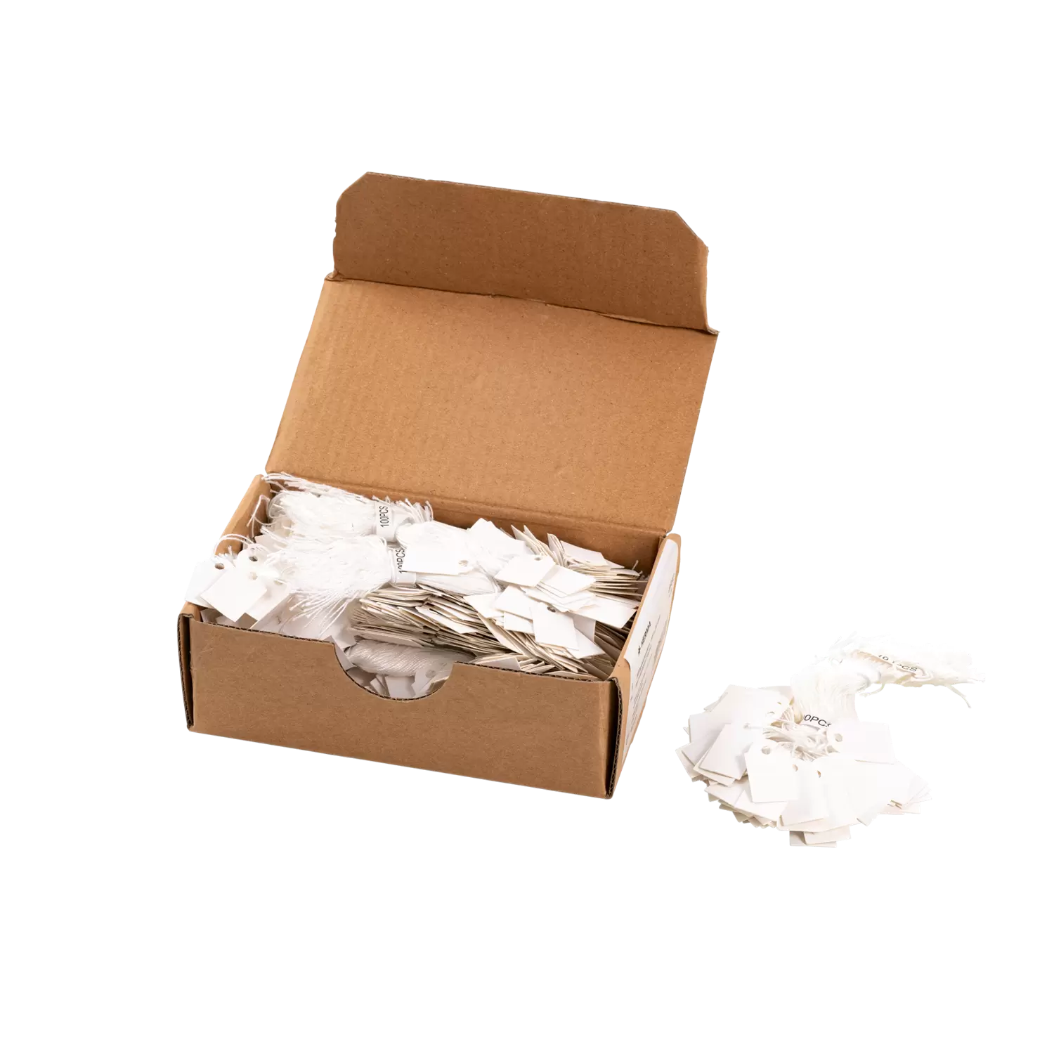 Witte hanglabels voor prijs- en productinformatie. 1000 etiketten per verpakking.