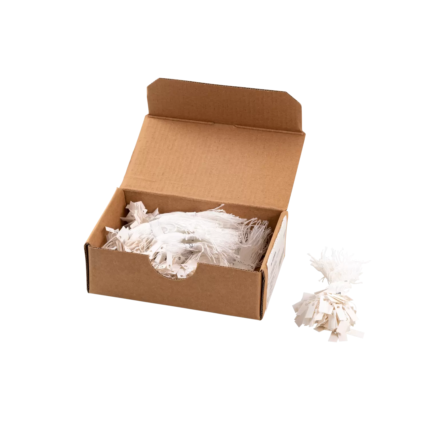 Witte hanglabels voor prijs- en productinformatie. 1000 etiketten per verpakking.