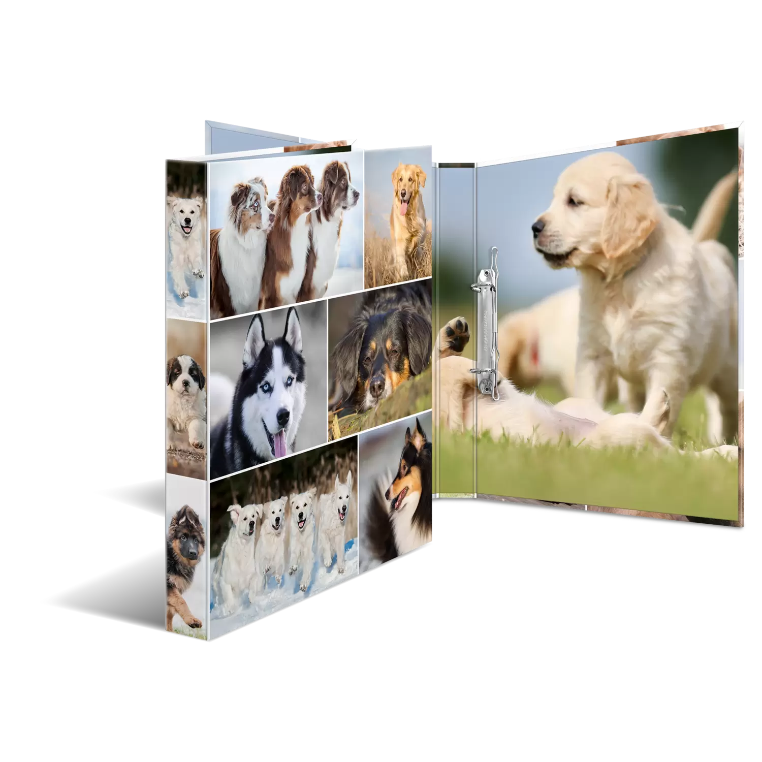 Nieuw in de serie dierenliefhebbers zijn de hoogwaardig glanzende ringmappen met ringmechaniek en metalen klemmen. Nieuw is ook de gefreesde rug, die gemakkelijk openen en sluiten mogelijk maakt, evenals een 100% vlakligging. Gemaakt van stevig karton met een rugbreedte van 35 mm zijn ze uitermate geschikt voor DIN A4-brochurehoezen, verdelers en registers.