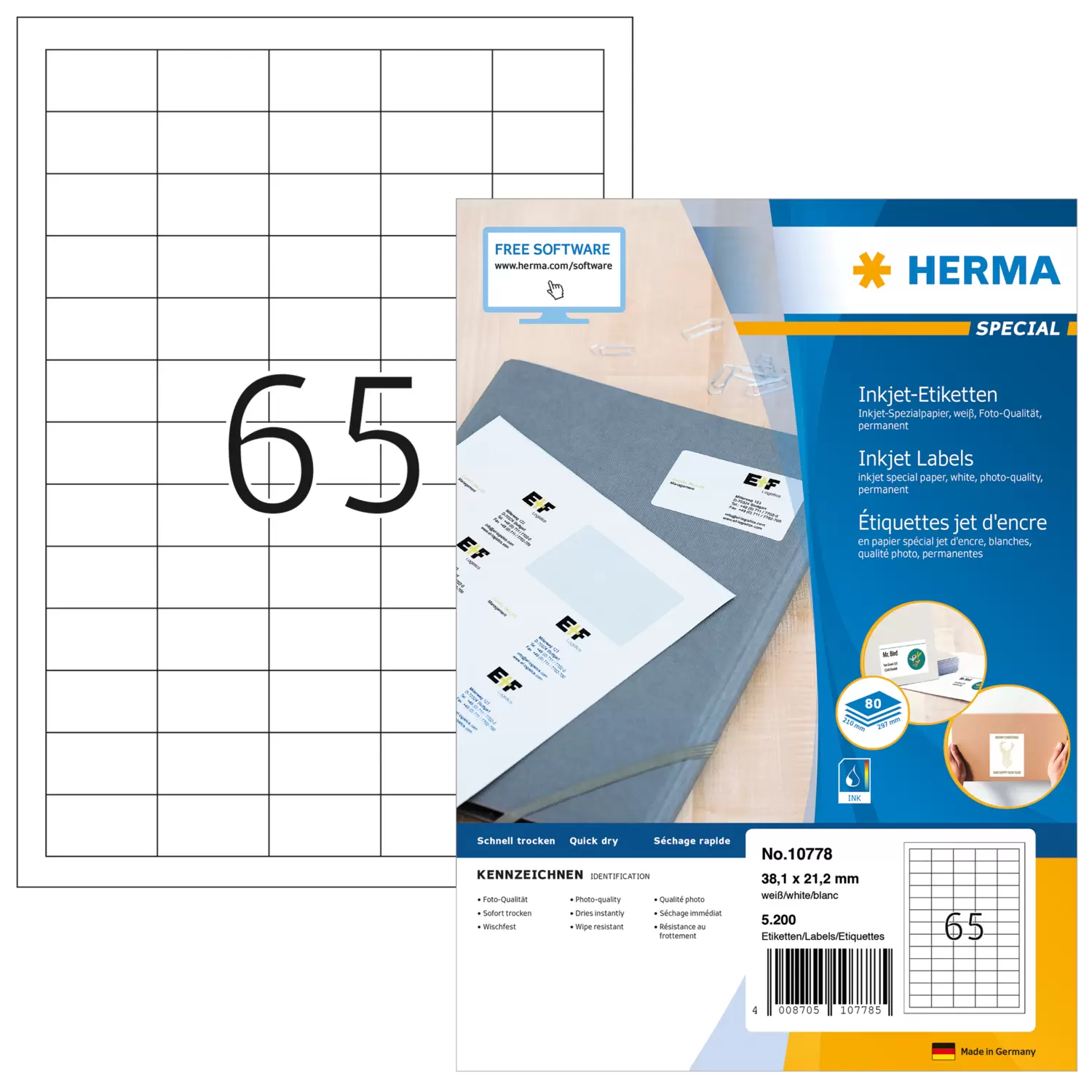 Inkjet-etiketten, A4, 38,1 x 21,2 mm, wit, permanent hechtend