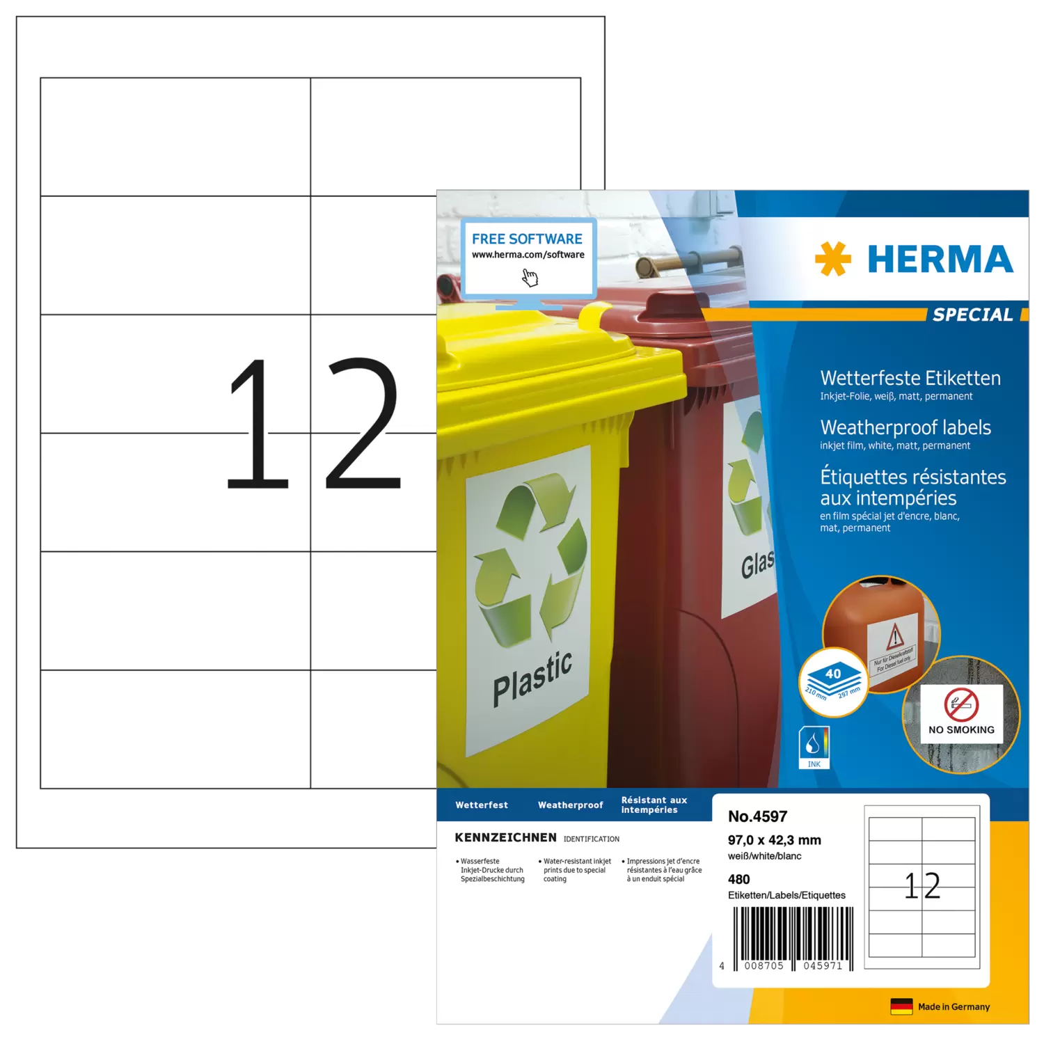 U wilt uw etiket met Word opmaken? Download dan bij elk HERMA etiket het passende sjabloon – u hoeft dan niets meer uit te meten of in te stellen. En u kunt in uw vertrouwde programma doorwerken. De functies daarvan blijven onbeperkt tot uw beschikking staan. Comfortabeler gaat niet.