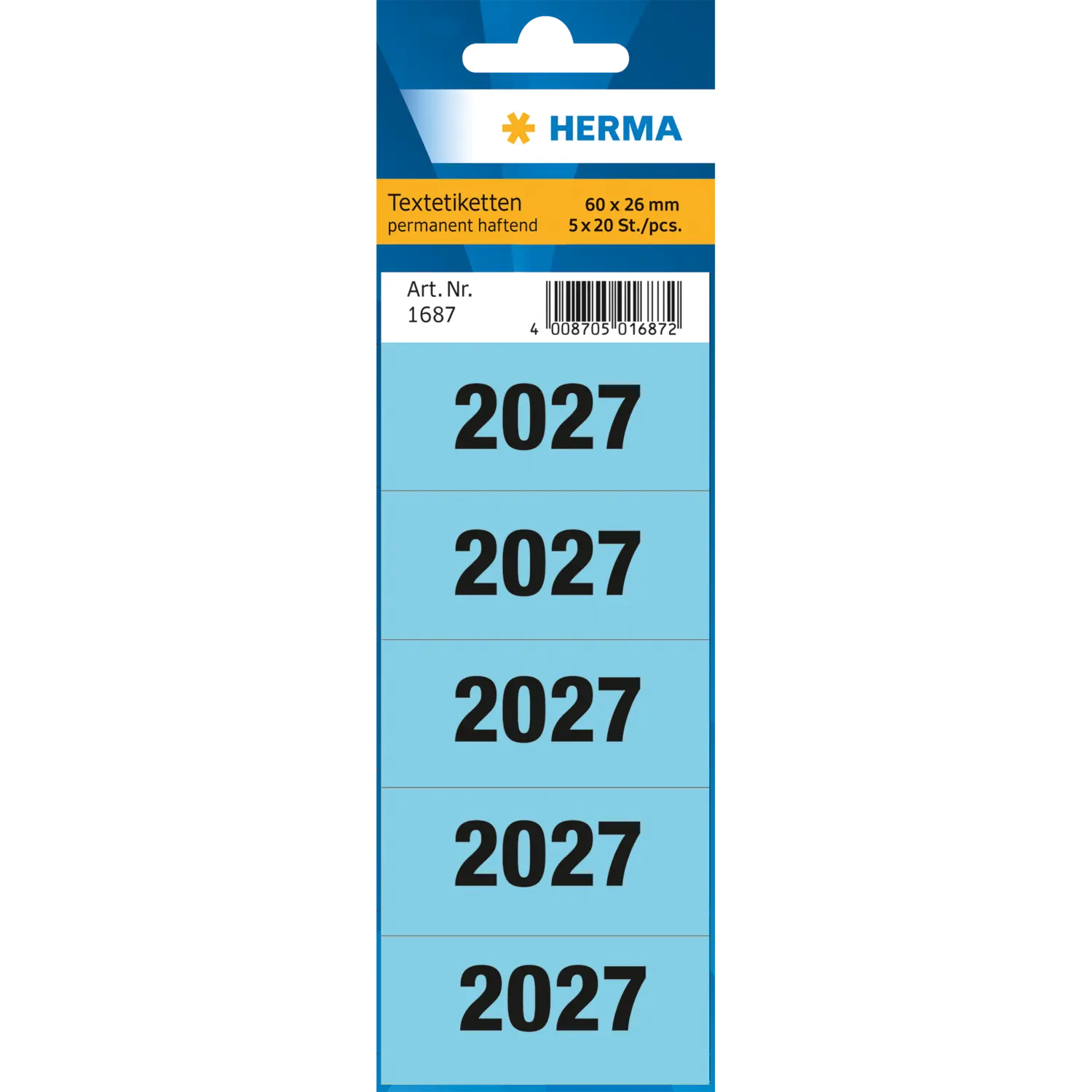 Jaartallen 2027 voor ordners, 60 x 26 mm, blauw, permanent hechtend