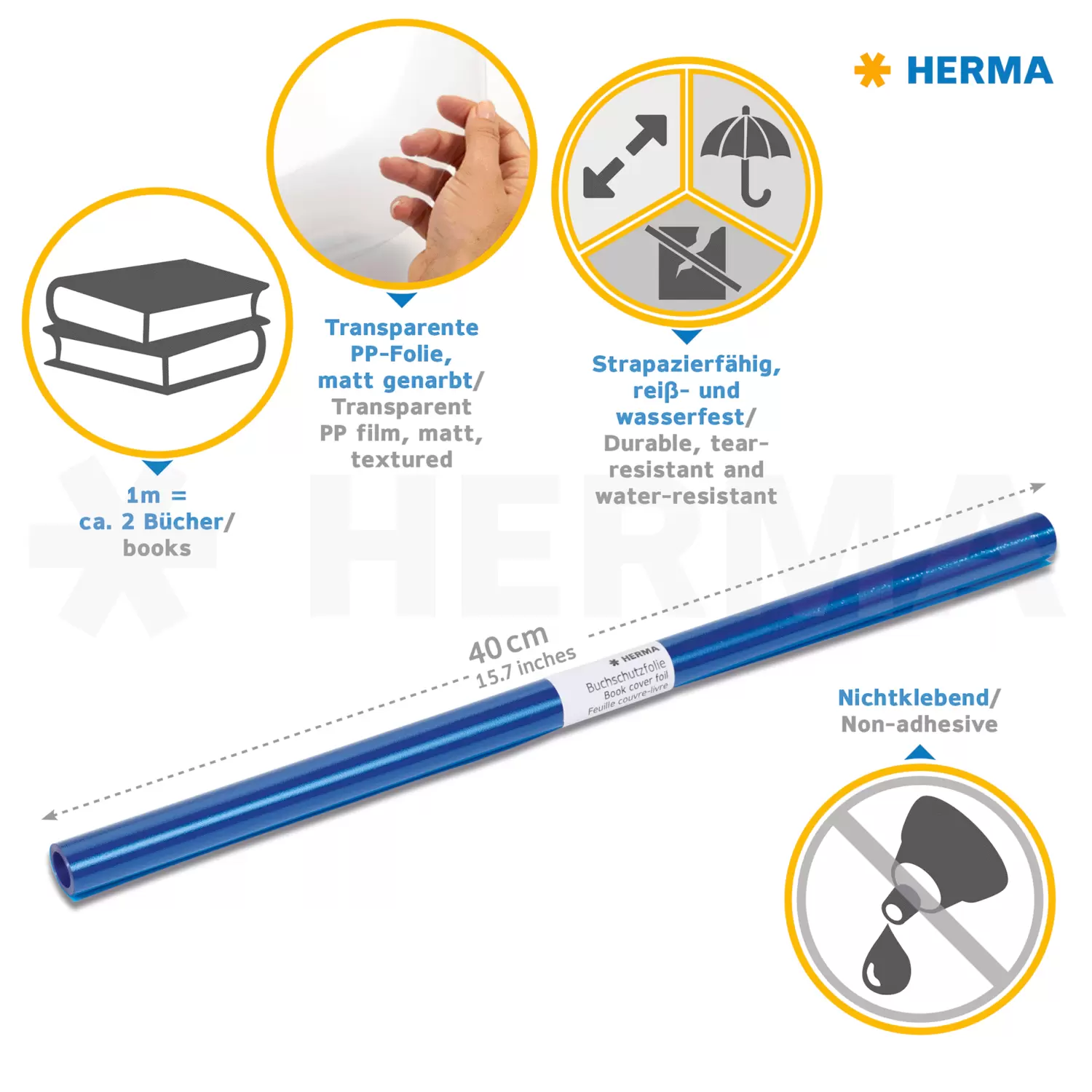 Transparante, bijzonder scheurvrije boekkaftfolie van PP. De perfectebescherming voor alle boeken.