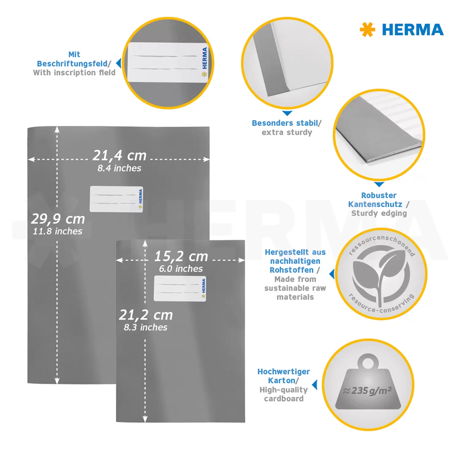 Breng met deze gele omslag een beetje zonneschijn in het dagelijks leven. De felgele omslag is geschikt voor alle schriften, zoals schoolschriften, schriften, schrijfschriften, rekenschriften of alle tec hnische documentatie in DIN A5-formaat. Hij is van stevig karton en een goed alternatief voor traditionele kaften die plastic of kunststof gebruiken. Het extra sterke papier zorgt er optimaal voor dat de schriften van school, universiteit of werk beschermd zijn tegen diverse gebruikssporen, zoals vlekken. Met het praktische etiket kan belangrijke informatie over de eigenaar van het schrift, de school of het lesvak duidelijk op de voorkant worden vastgelegd. Als het schrift een keer kwijtraakt, kan de vinder het eenvoudig retourneren aan de eigenaar. Als u meer stralende kleuren nodig hebt voor uw schriften, kunt u kiezen uit een kleurenpalet met nog eens tien extra tinten. Door het gebruik van verschillende kleuren wordt op het eerste oog duidelijk welke kleur bij welke inhoud hoort. Met deze kaft van beproefde HERMA-kwaliteit blijven uw schriften en boekwerkjes gegarandeerd lang schoon en netjes.