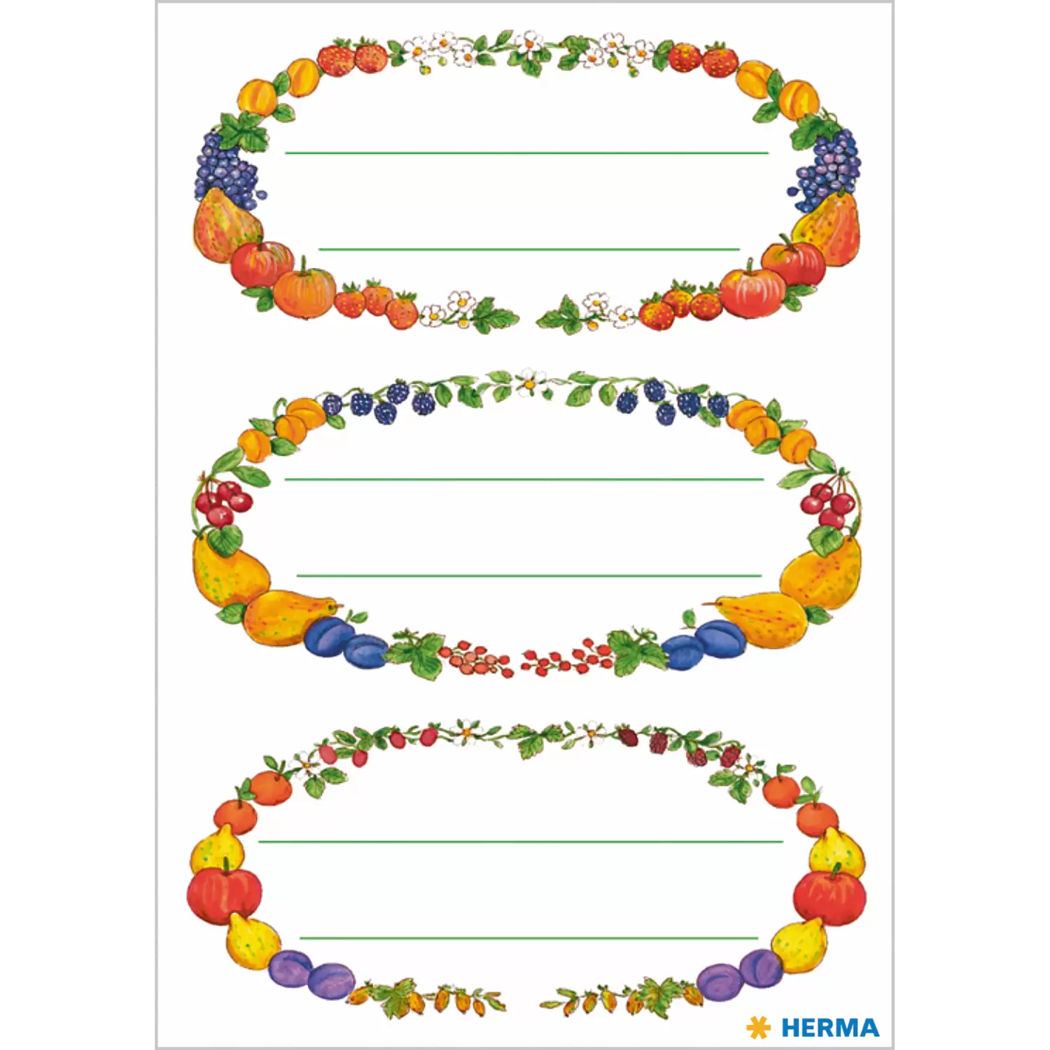 Zelfklevende, bont bedrukte papieren keukenetiketten. Voor hetkenmerken en beschrijven van etenswaren en dranken of voor beschrijvingvan kruidenpotjes.