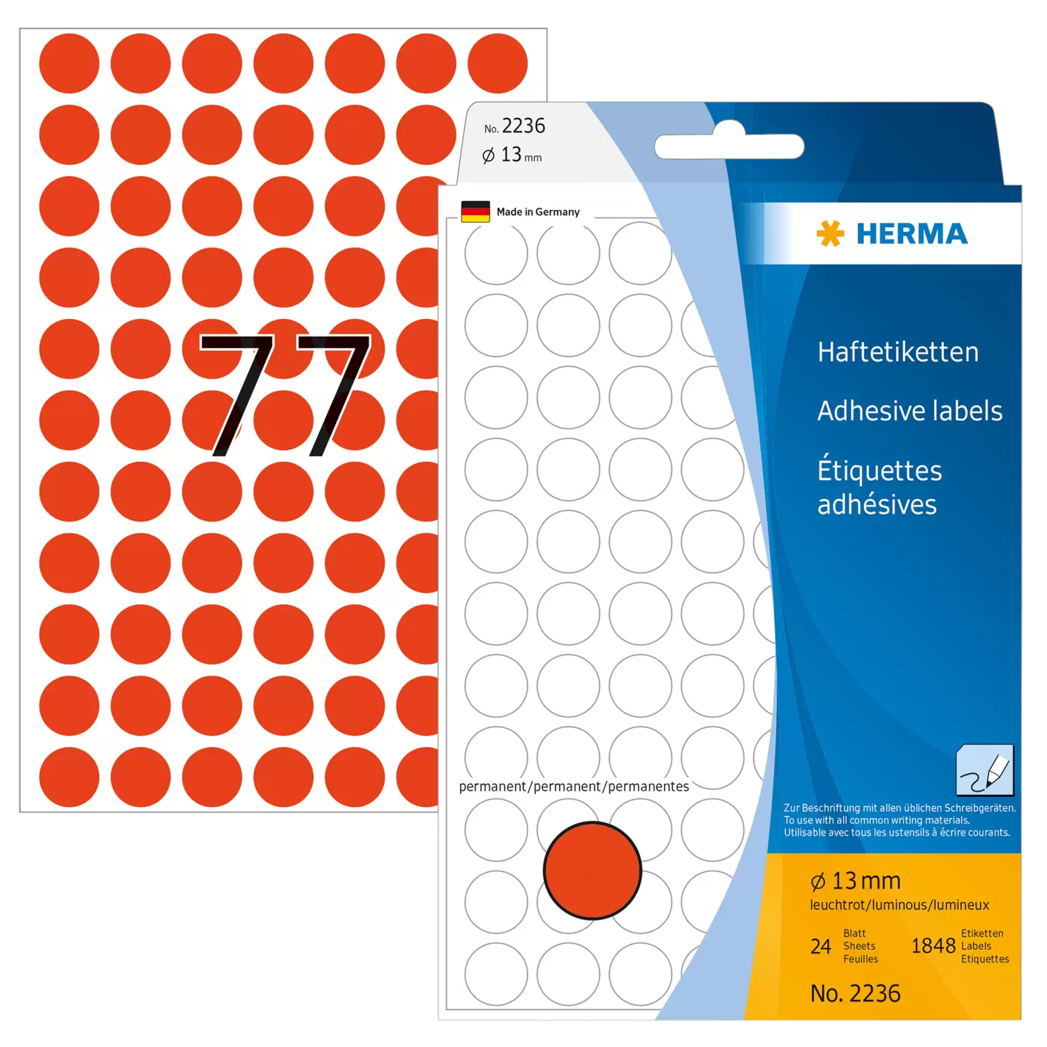 Multipurpose-etiketten, Ø 13 mm, rond fluor rood, permanent hechtend, om met de hand te beschrijven