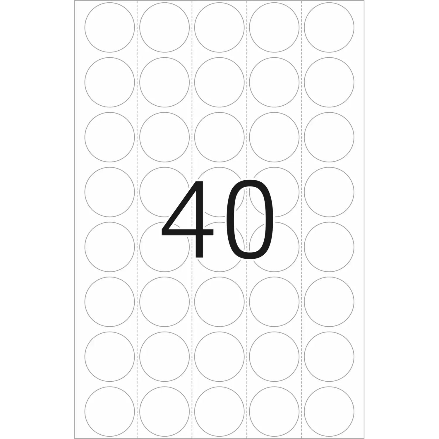 Verwijderbare etiketten, A4, Ø 20 mm, rond wit