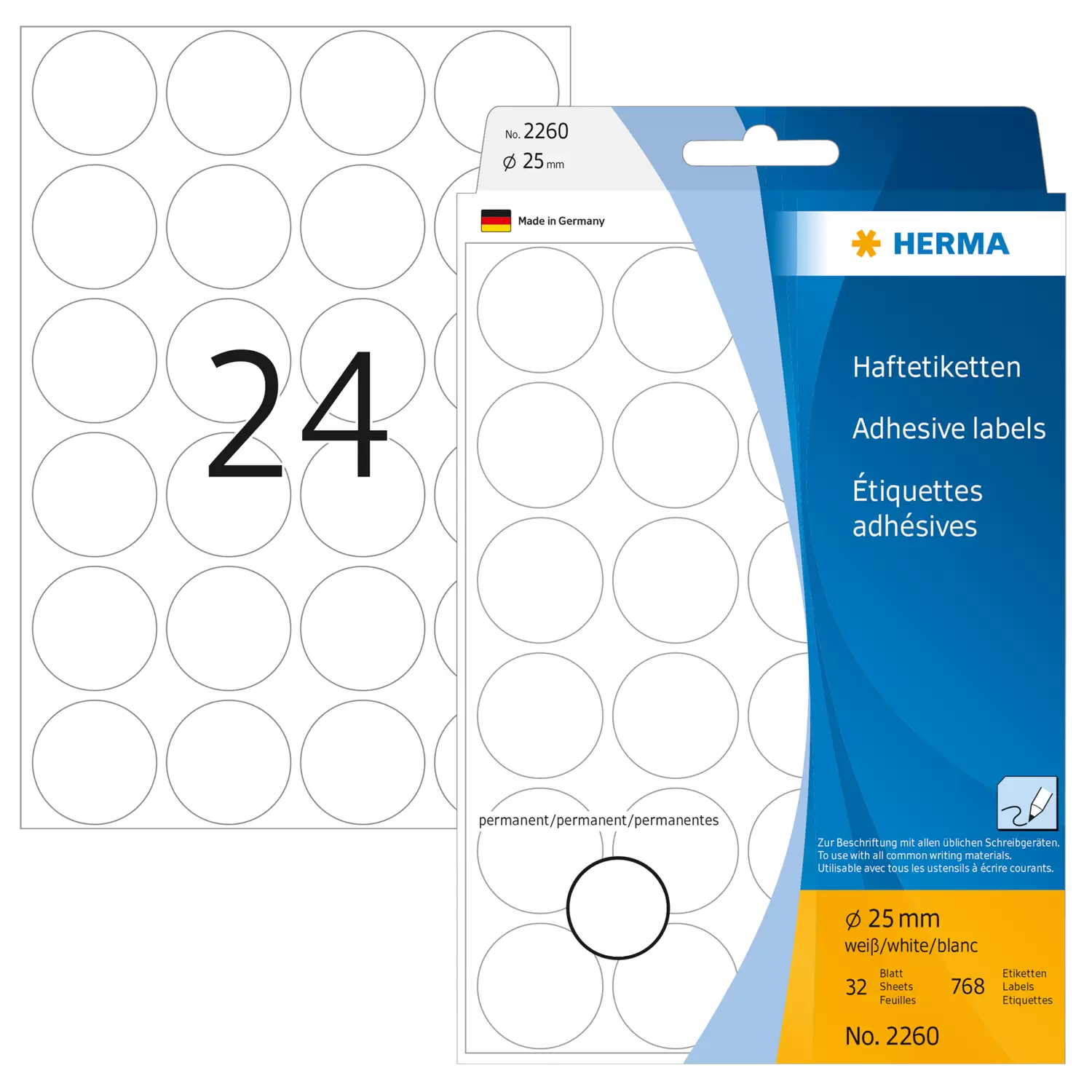 Multipurpose-etiketten, Ø 25 mm, rond wit, permanent hechtend, om met de hand te beschrijven