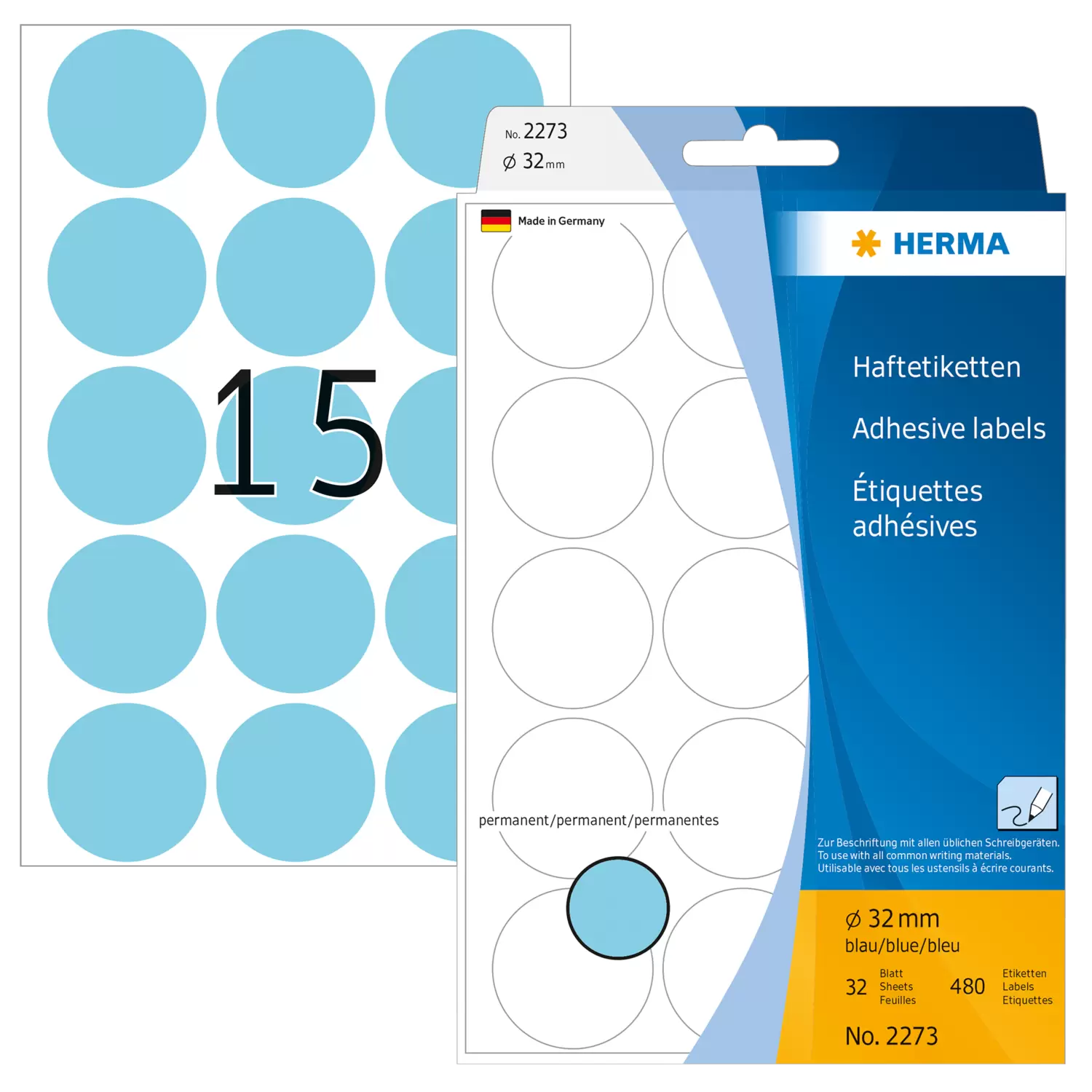 Multipurpose-etiketten, Ø 32 mm, rond blauw, permanent hechtend, om met de hand te beschrijven