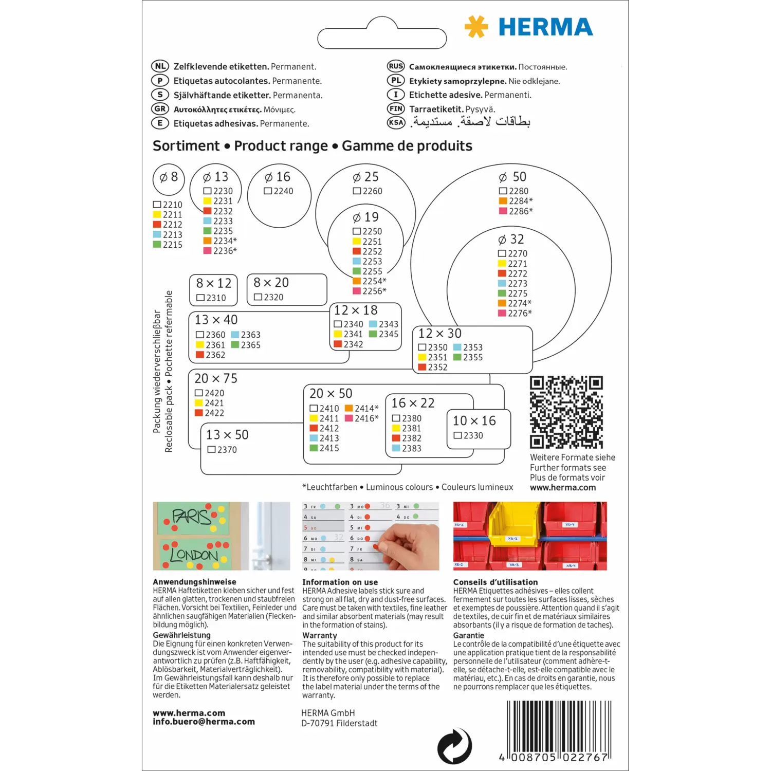 Universele etiketten voor markeren en organiseren. Zelfklevende etiketten van hoogwaardig schrijfpapier. Milieuvriendelijk: FSC® Mix Credit-gecertificeerd, chloorvrij gebleekt, oplosmiddelvrije contactlijm. Vel formaat 111 x 170 mm. Voor handbeschrijving med alle schrijfmiddelen en schrijfmachines. Niet geschikt voor PC printers.
