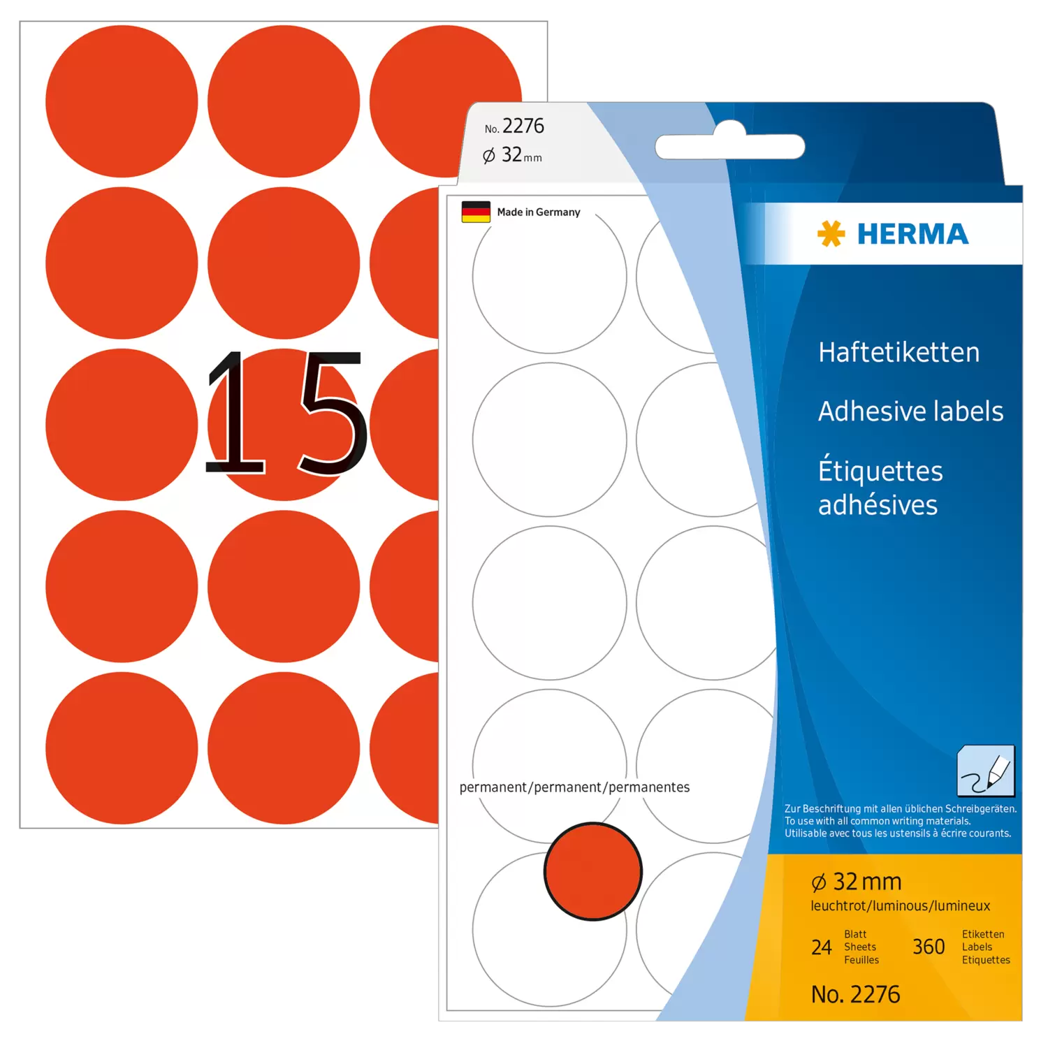 Multipurpose-etiketten, Ø 32 mm, rond fluor rood, permanent hechtend, om met de hand te beschrijven