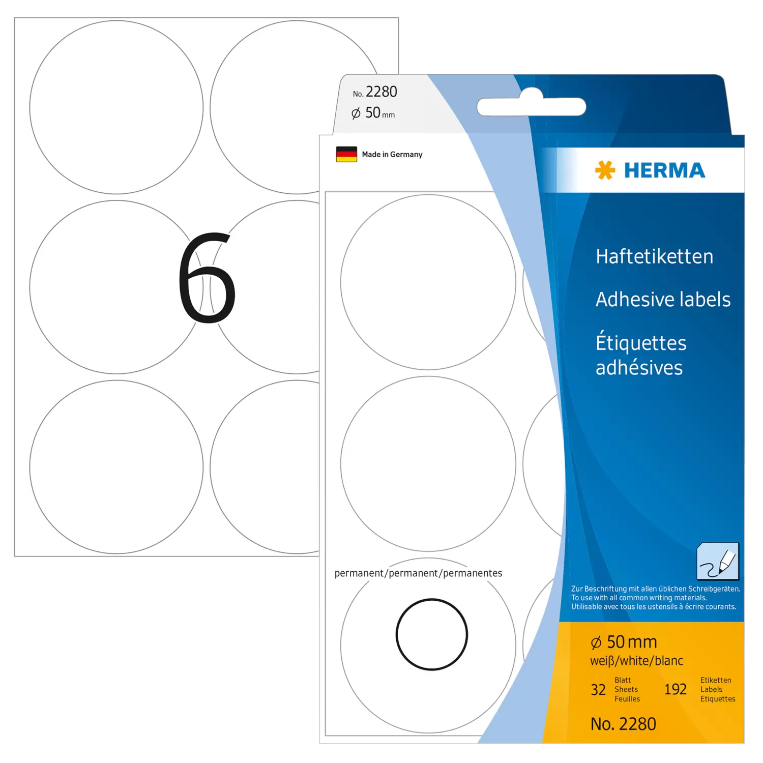 Multipurpose-etiketten, Ø 50 mm, rond wit, permanent hechtend, om met de hand te beschrijven