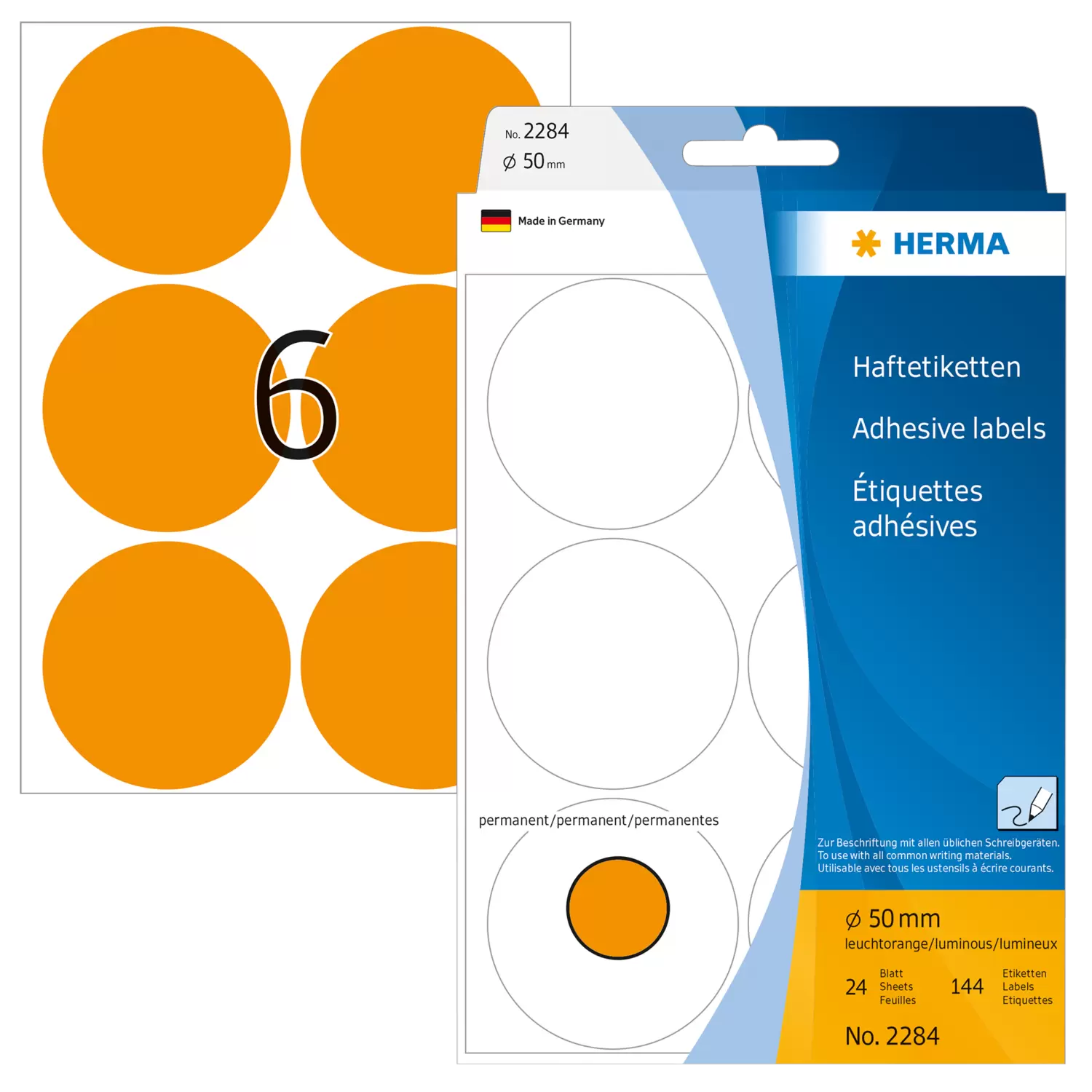 Multipurpose-etiketten, Ø 50 mm, rond fluor oranje, permanent hechtend, om met de hand te beschrijve
