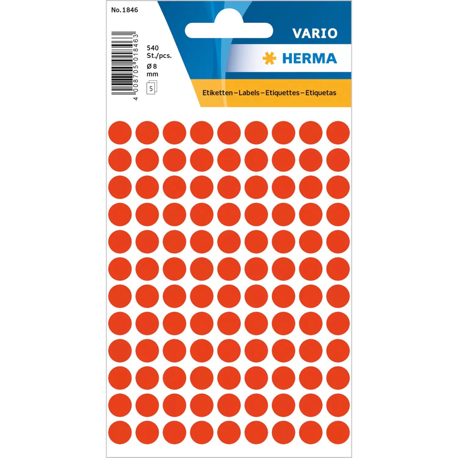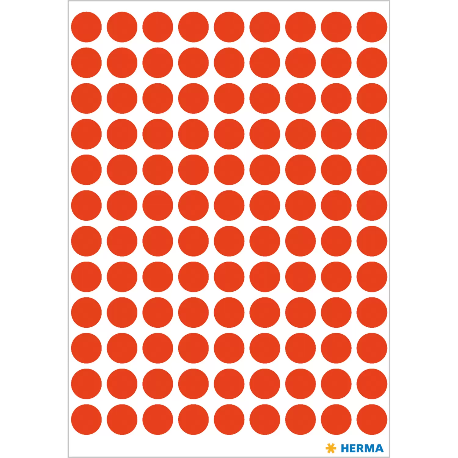 Multipurpose-etiketten, Ø 8 mm, rond fluor rood, permanent hechtend, om met de hand te beschrijven
