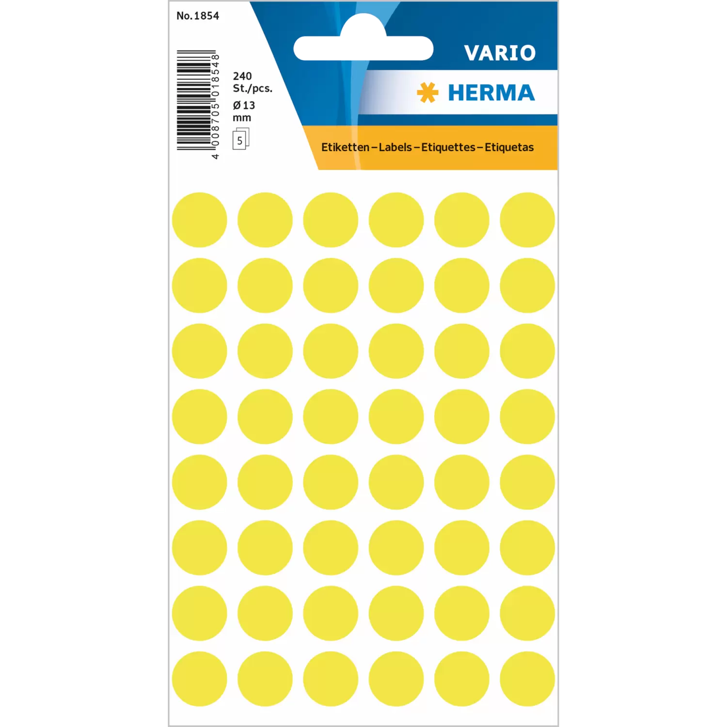 Multipurpose-etiketten, Ø 13 mm, rond fluor geel, permanent hechtend, om met de hand te beschrijven