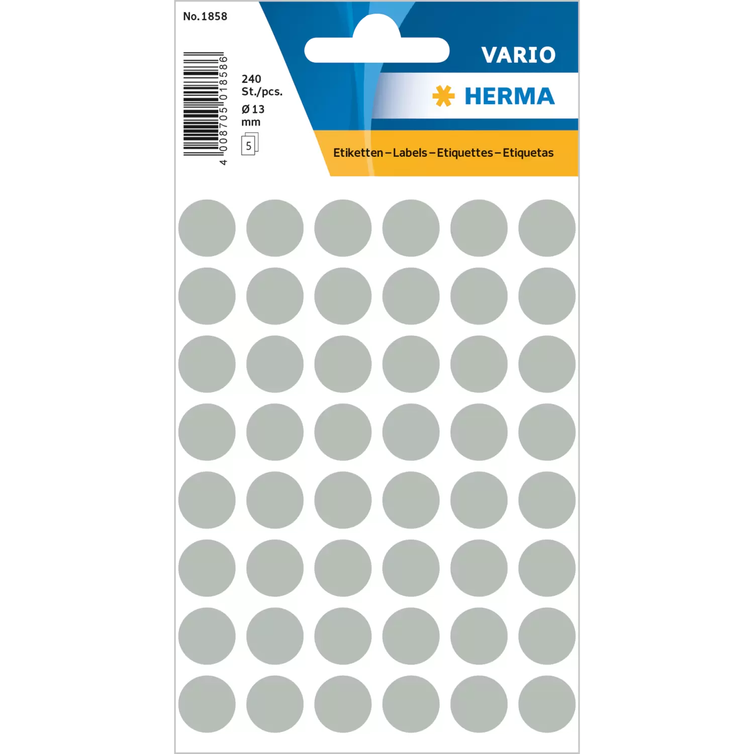 Multipurpose-etiketten, Ø 13 mm, rond grijs, permanent hechtend, om met de hand te beschrijven