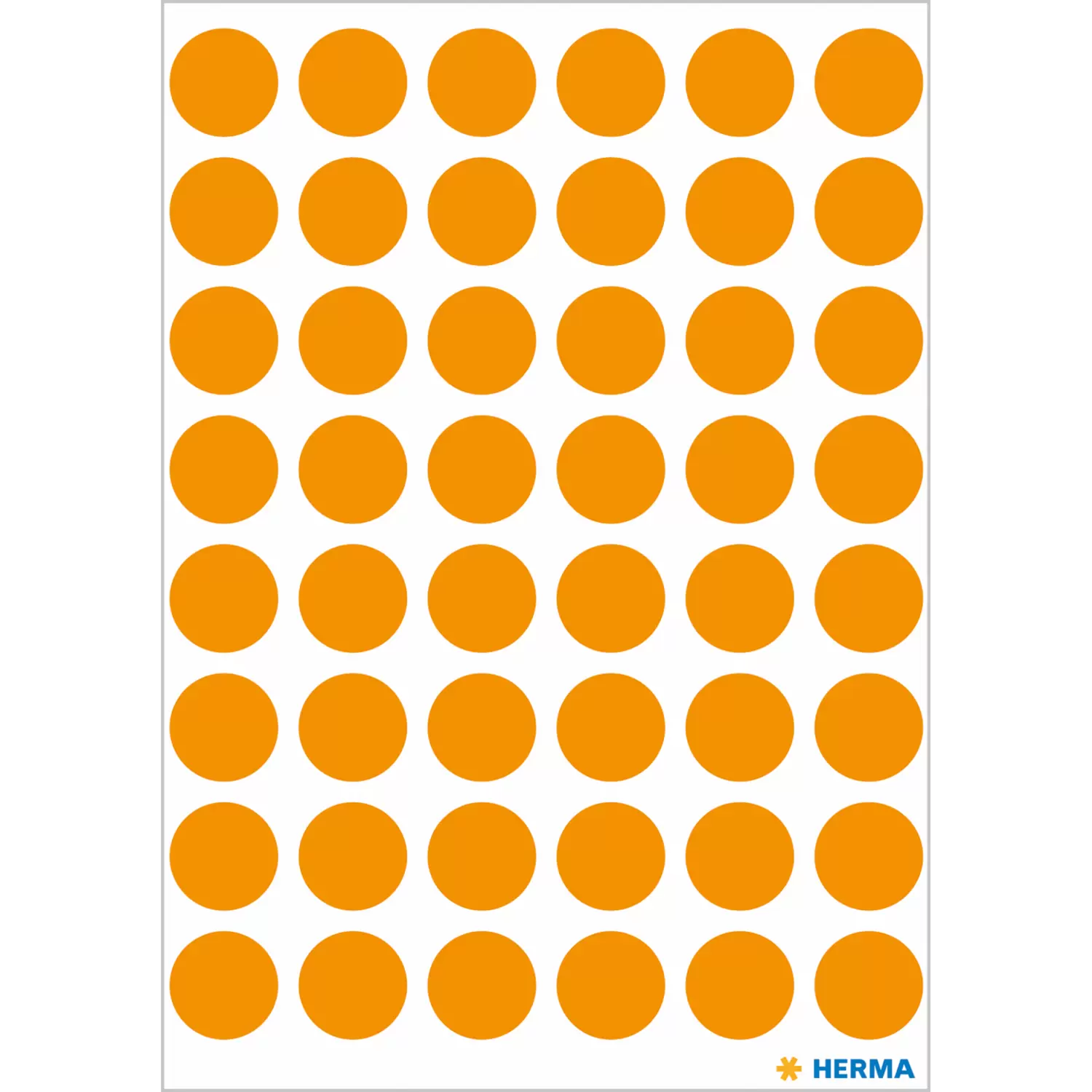 Multipurpose-etiketten, Ø 13 mm, rond fluor oranje, permanent hechtend, om met de hand te beschrijve