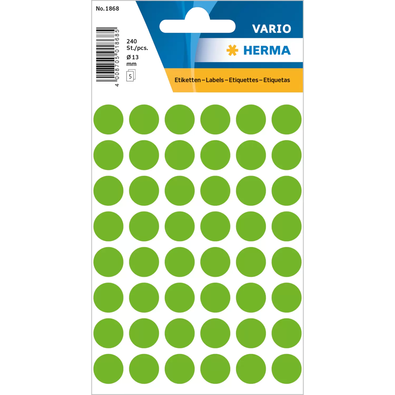 Multipurpose-etiketten, Ø 13 mm, rond fluor groen, permanent hechtend, om met de hand te beschrijven