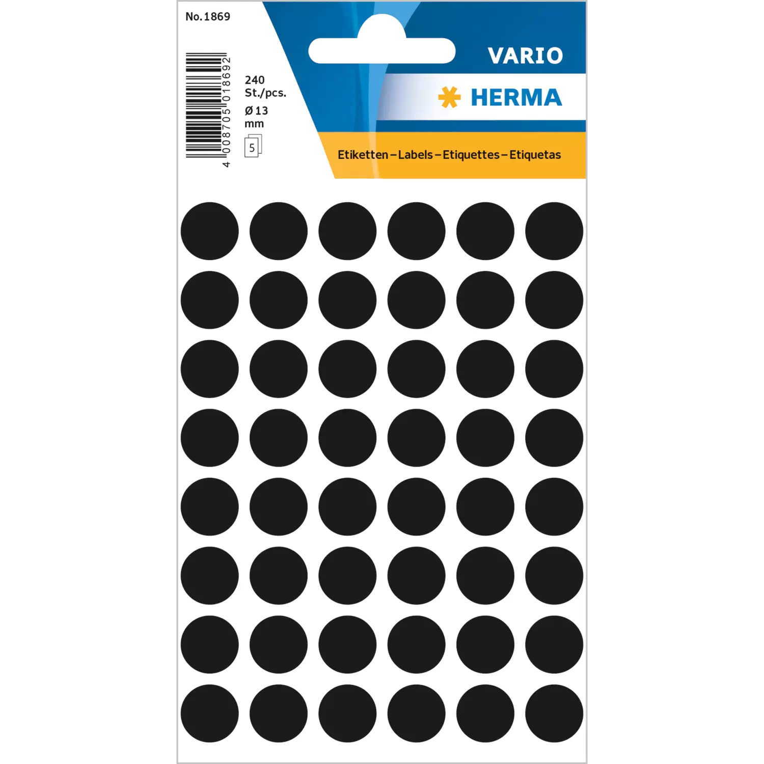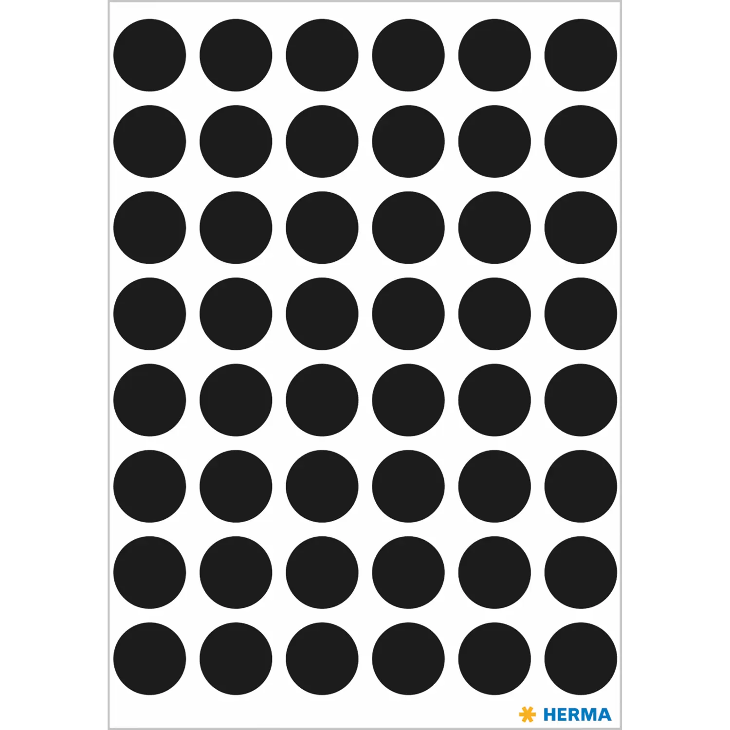 Multipurpose-etiketten, Ø 13 mm, rond zwart permanent hechtend, om met de hand te beschrijven