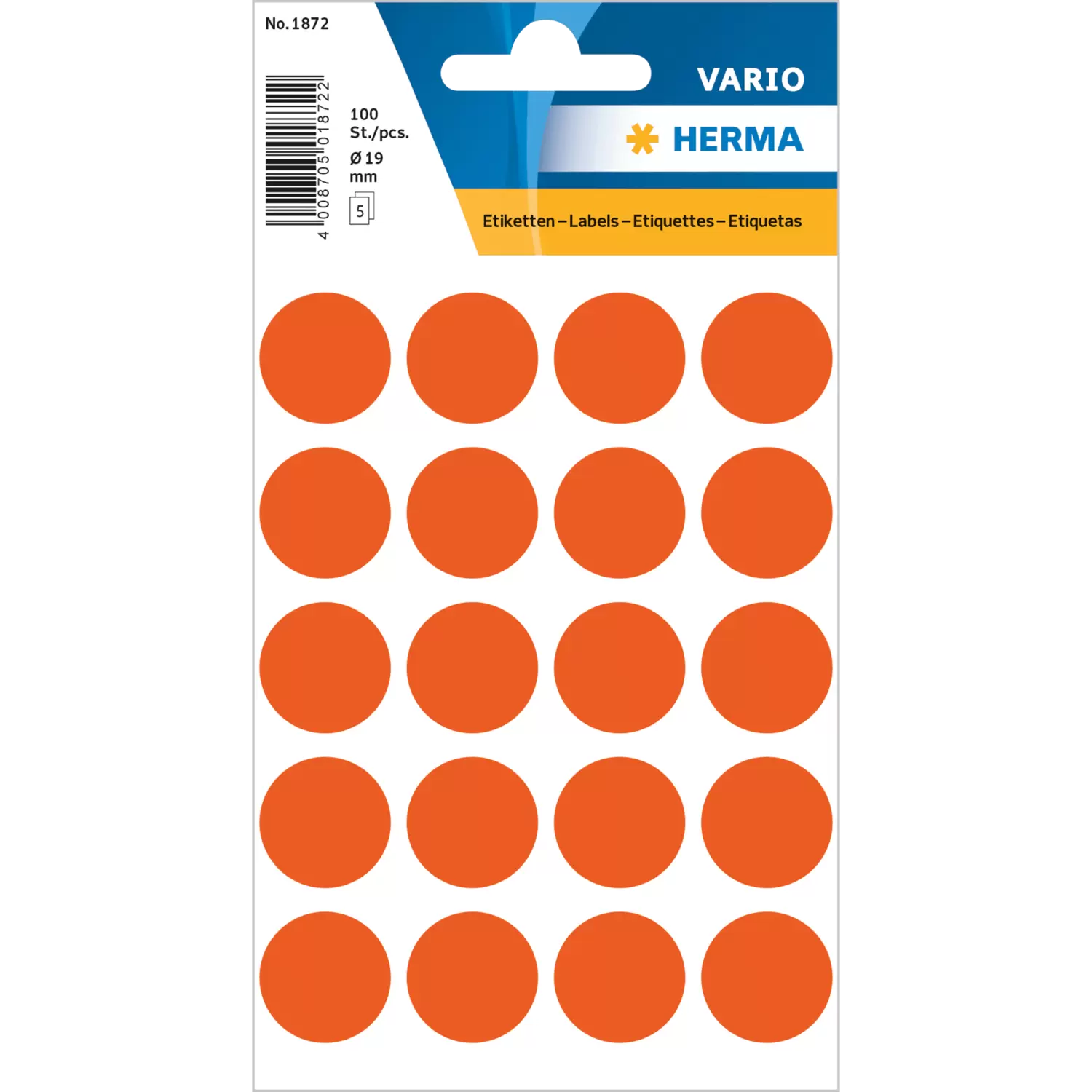 Multipurpose-etiketten, Ø 19 mm, rond rood, permanent hechtend, om met de hand te beschrijven