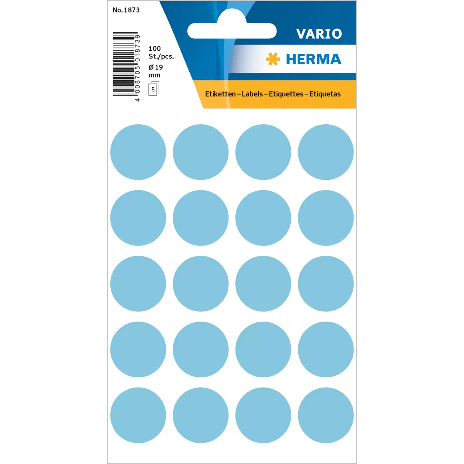 Multipurpose-etiketten, Ø 19 mm, rond blauw, permanent hechtend, om met de hand te beschrijven