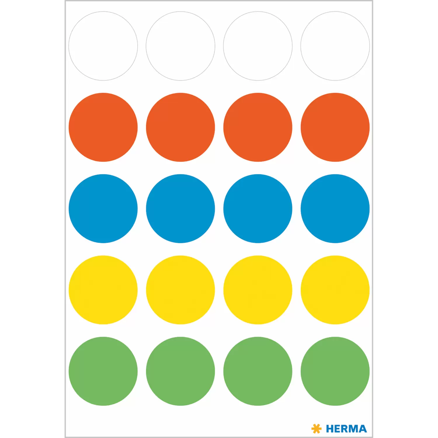 Multipurpose-etiketten, Ø 19 mm, rond kleuren gesorteerd permanent hechtend, om met de hand te besch