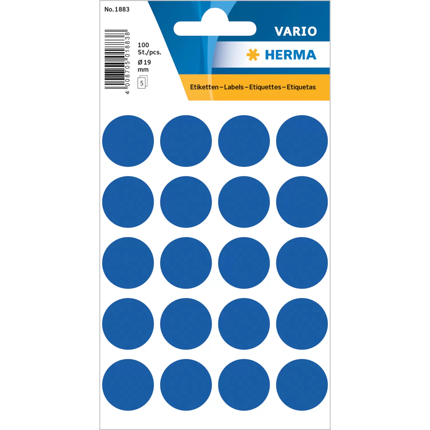 Multipurpose-etiketten, Ø 19 mm, rond donkerblauw, permanent hechtend, om met de hand te beschrijven