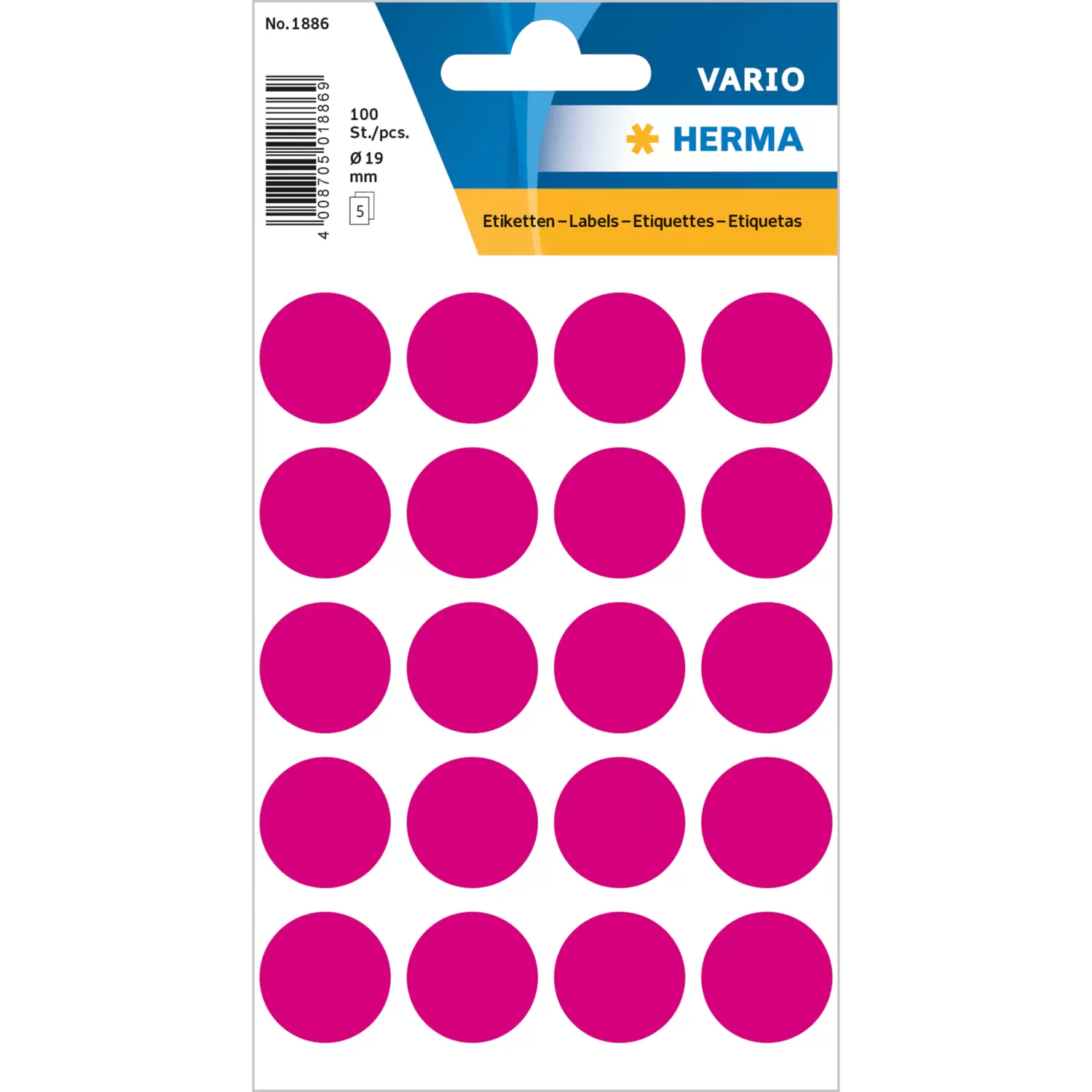 Multipurpose-etiketten, Ø 19 mm, rond roze, permanent hechtend, om met de hand te beschrijven