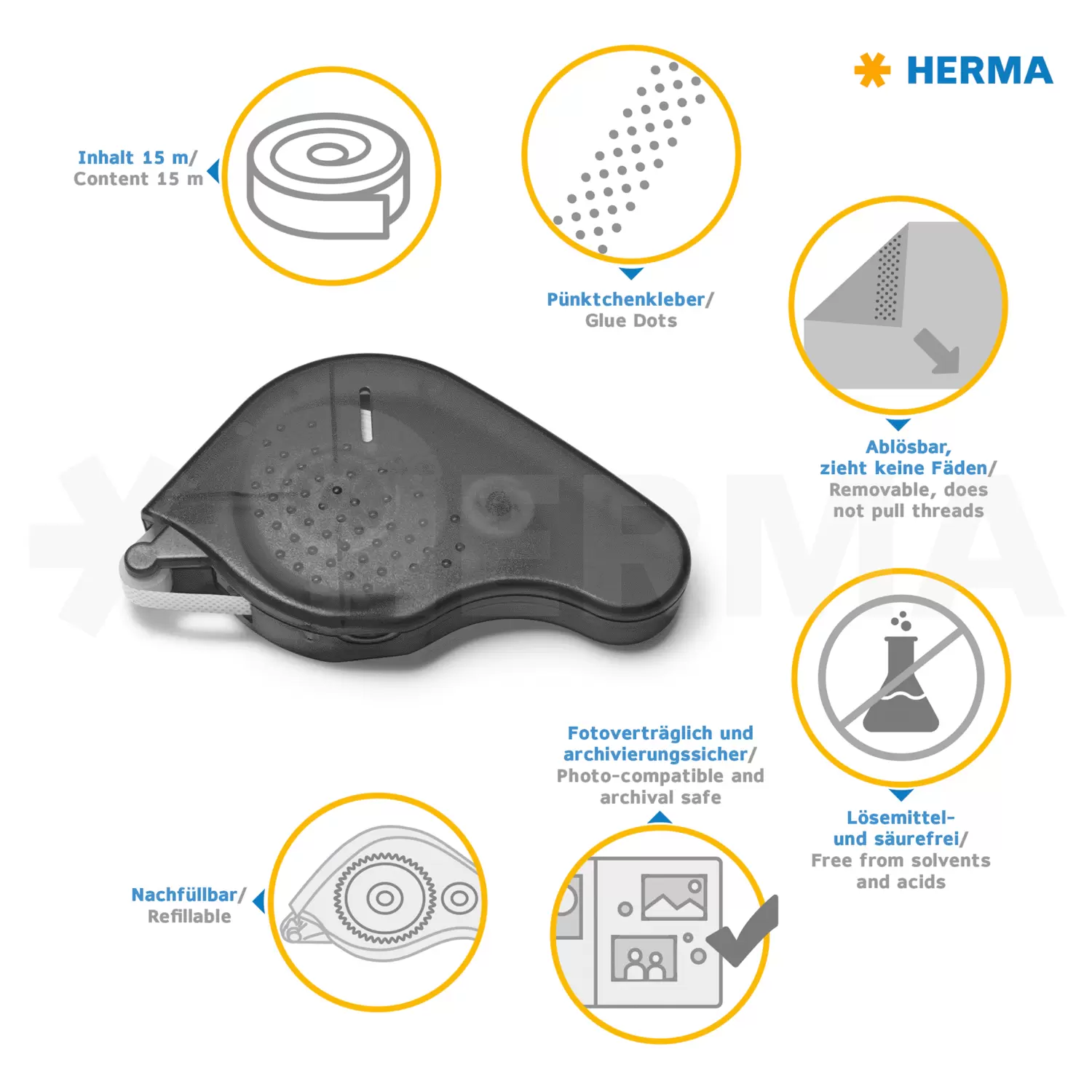 Het navulrolletje voor de lijmdispenser vindt u via de volgende link: www.herma.nl/transfer-navulrol-verwijderbaar-1061/