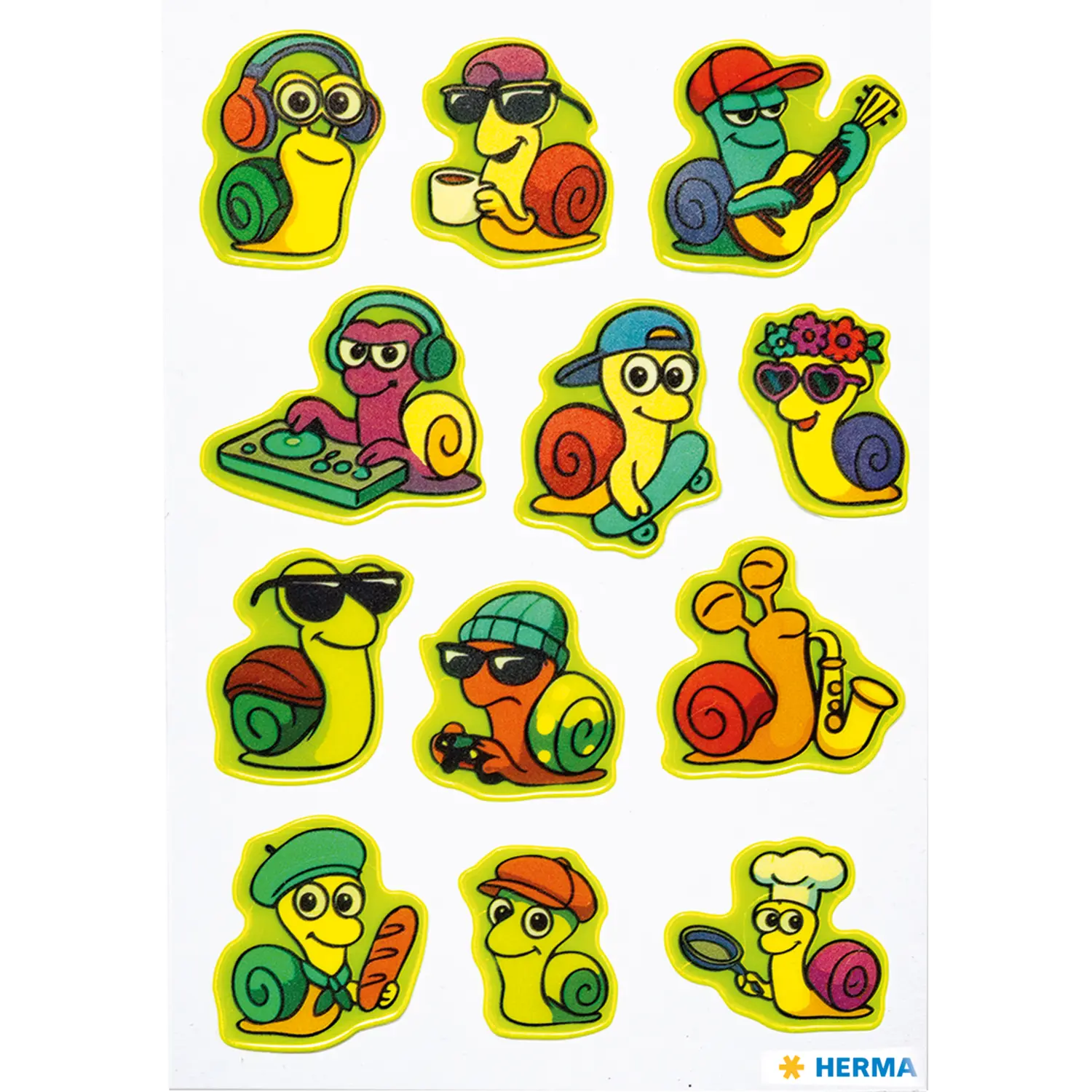 De slakkenstickers zetten in op een geheel nieuwe combinatie van humor, creativiteit en opvallend design. Elk figuurtje verrast met een bijzondere persoonlijkheid of het nu gaat om een coole skater slak, een muzikale dj of een getalenteerde kok. Met hun grappige details en charmante ideeën brengen de motieven afwisseling in elke verzameling. De stickers zijn gemaakt van lichtreflecterend neonmateriaal in felgeel en trekken meteen alle aandacht. De bijzondere afwerking geeft ze niet alleen uitstraling, maar ook een moderne, trendy look, waardoor ze zich duidelijk onderscheiden van klassieke stickers. Of het nu gaat om het versieren van schriften, verzamelen en ruilen of als klein cadeautje de slakken zorgen overal voor een hoogtepunt. Een creatieve set die humor, originaliteit en felle kleuren perfect combineert en zo gegarandeerd voor een goed humeur zorgt.