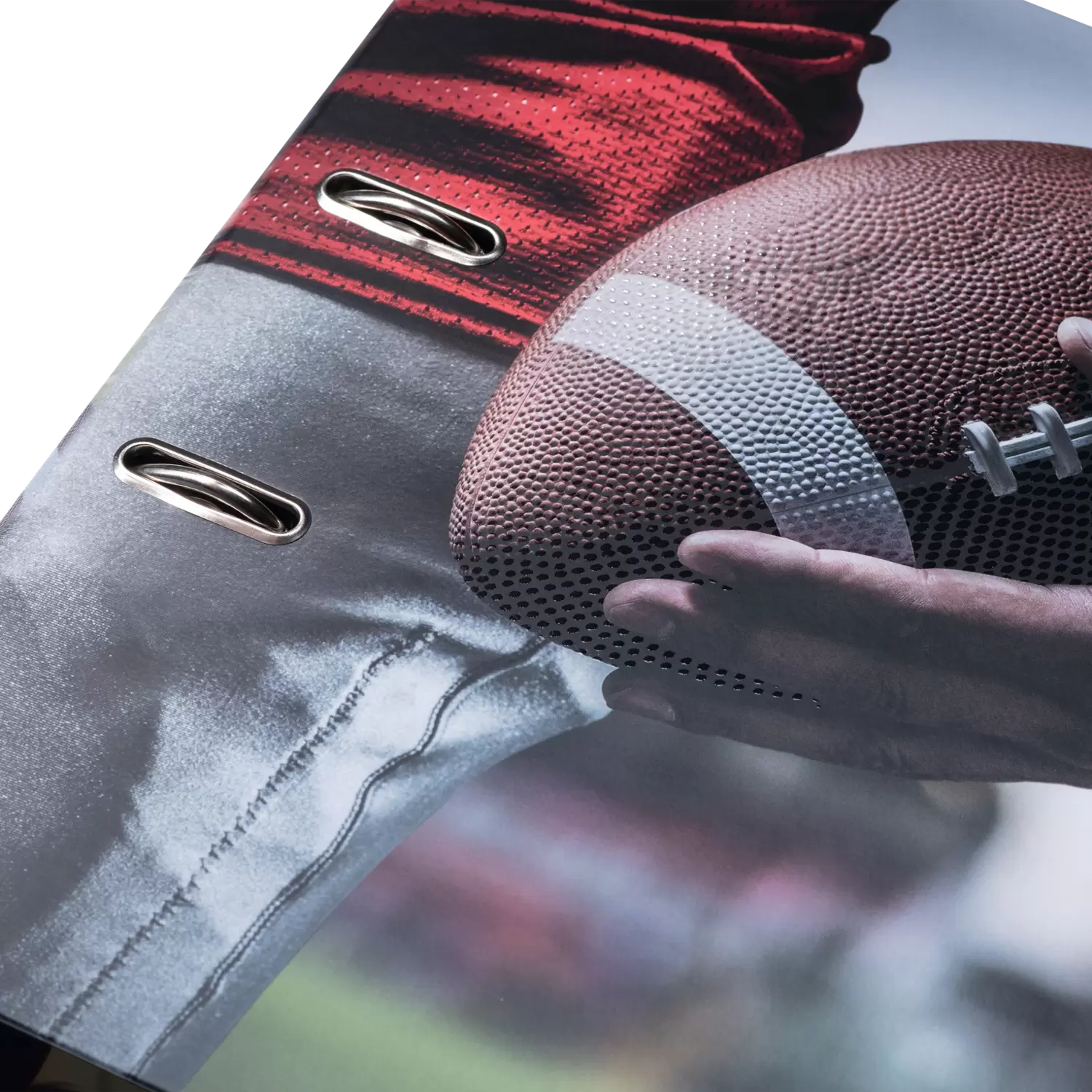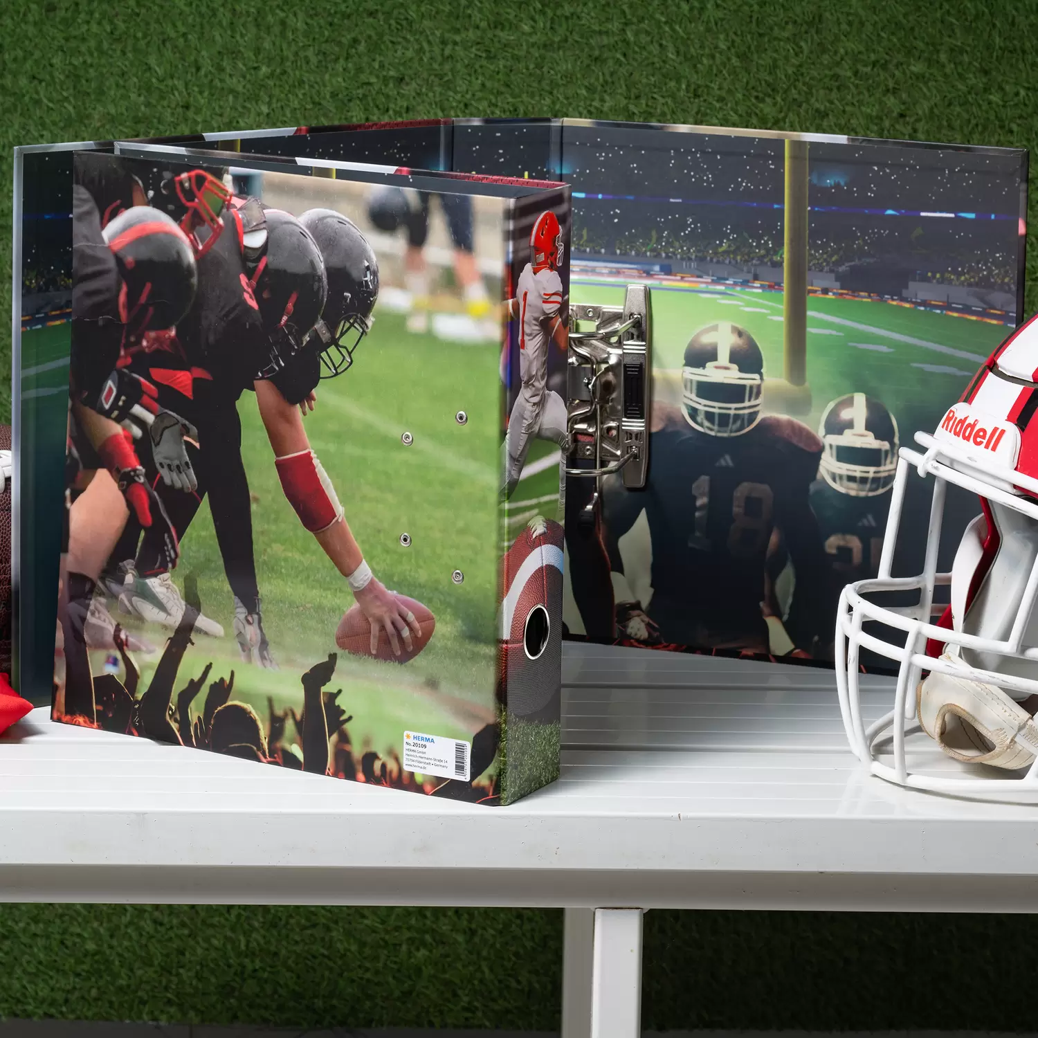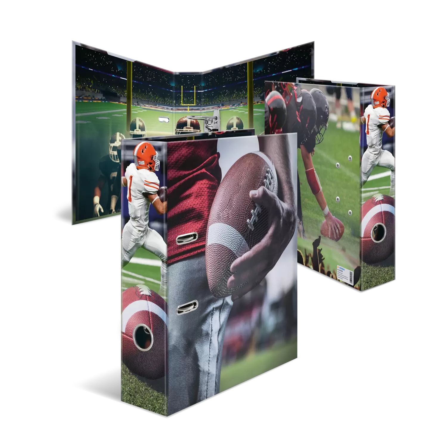 • Dynamische thema-ordner met sportmotief "American Football", met hoogwaardige afwerking, van buiten en van binnen volledig bedrukt