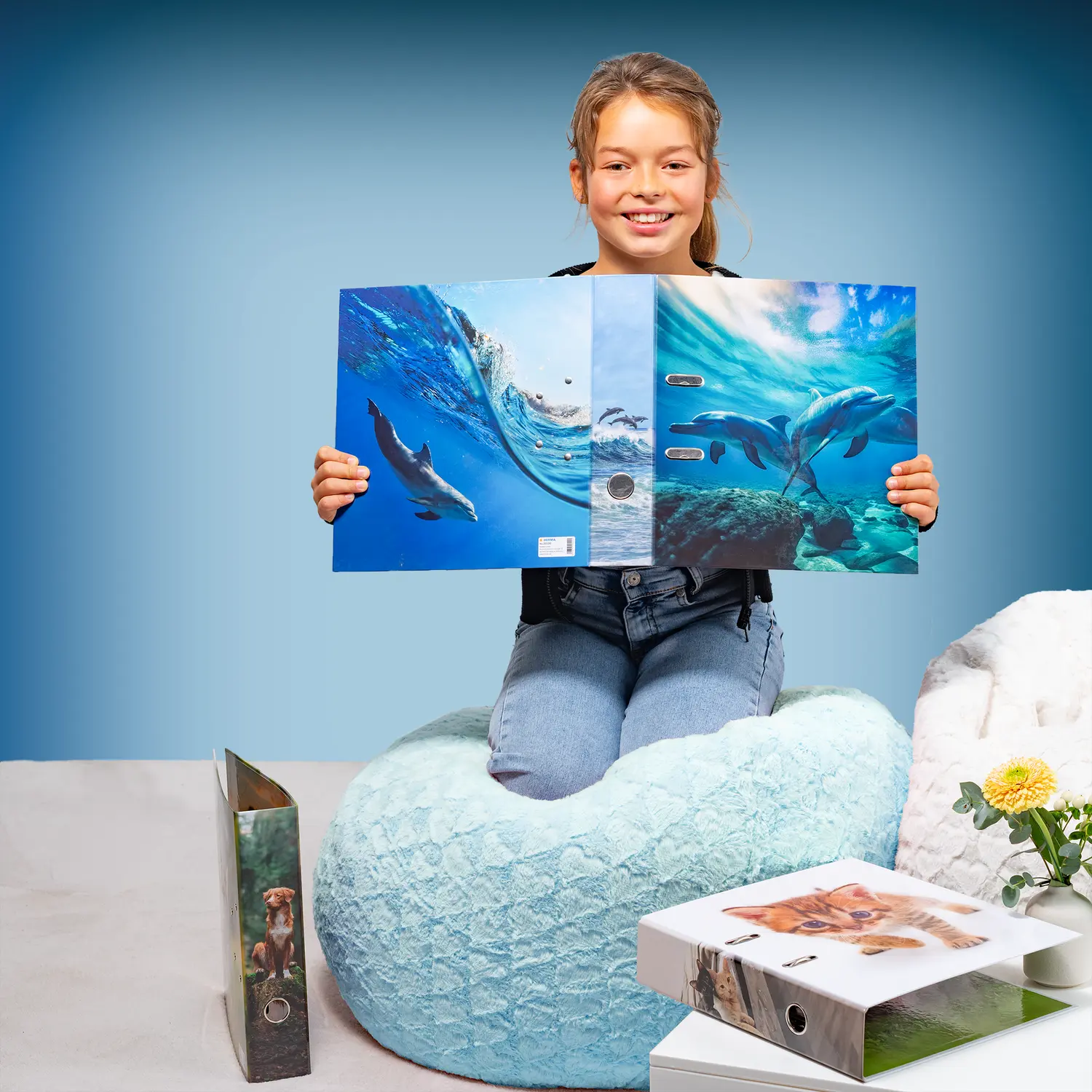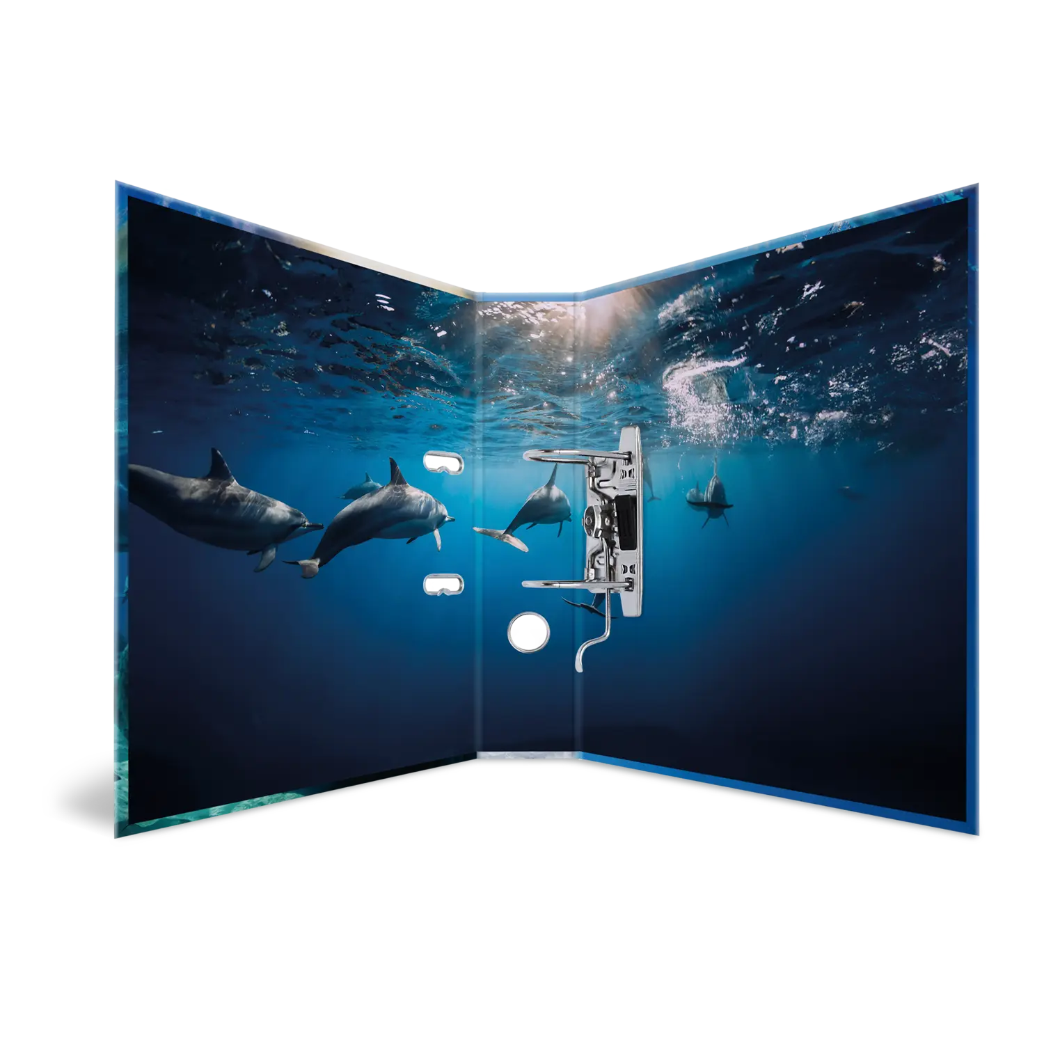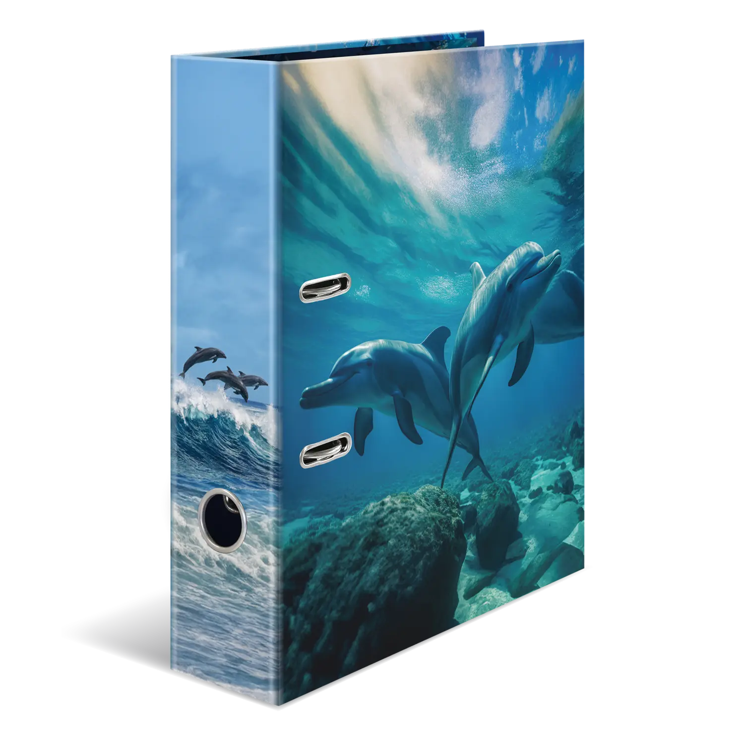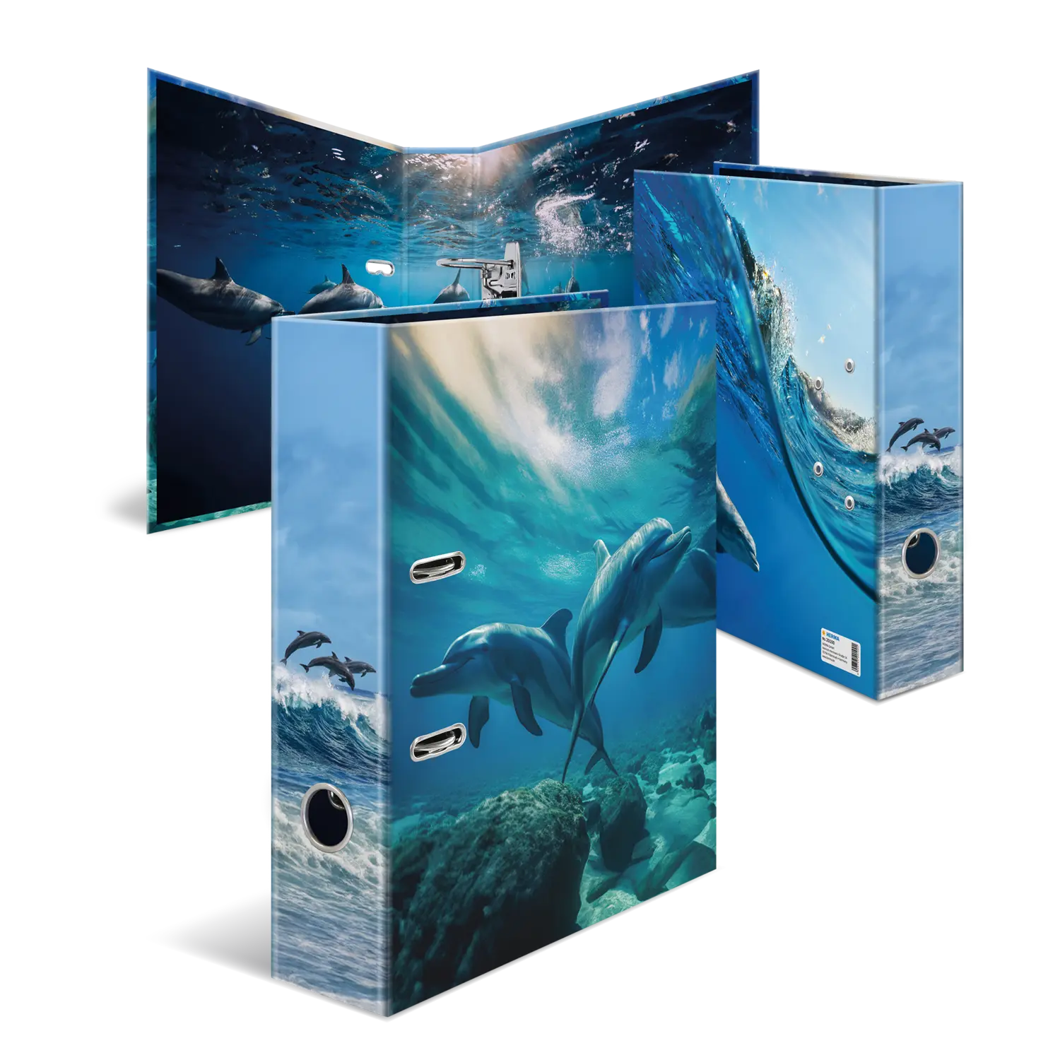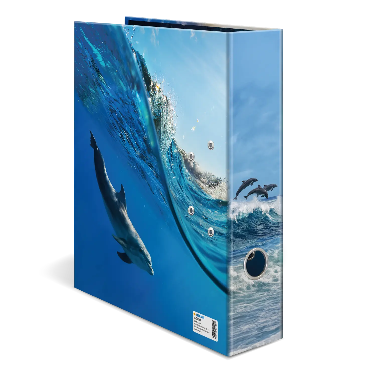 Beleef de fascinerende wereld van de dolfijnen valt met het nieuwe motief uit de serie "Lievelingsdieren" van HERMA. Deze unieke ordners geven de élégance en gratie van deze prachtige dieren treffend weer, te rwijl ze door het water glijden en vrolijk door de golven buitelen. Gemaakt van extra stevig karton en hoogwaardig afgewerkt, bieden ze niet alleen een goede bewaarplek voor belangrijke documenten, maar zijn ook een echte blikvanger op elk bureau of in de kast. Het robuuste hefboommechaniek zorgt ervoor dat alles op zijn plaats blijft. Met deze lievelingsdier ordner wordt organiseren een beleving met een vleugje dolfijnen élégance.