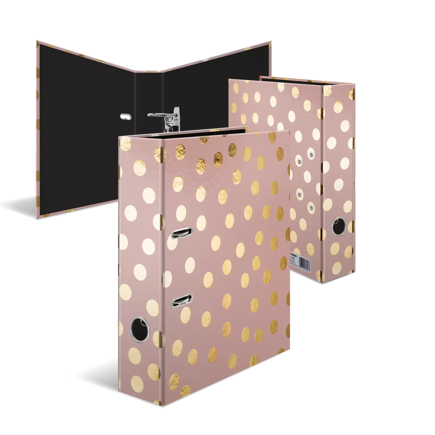 Als betrouwbare functionaliteit voor u even belangrijk is als origineel design, dan is deze moderne thema-ordner van het formaat A4 uitstekend geschikt om orde en structuur in uw dagelijks werk te brengen. Het karton waarvan de thema-ordner is gemaakt, is milieuvriendelijk en beschermt de inhoud optimaal tegen invloeden van buitenaf. Op school, de universiteit of op kantoor, als praktisch hulpje zorgt de ordner elke dag voor structuur en efficiënt werken. Door de eenvoudige, maar elegante punten op een fraaie oudroze ondergrond komt de foliecoating nog beter tot zijn recht. De ordner met motief en binnendruk is geschikt voor alle blaadjes van DIN A4-formaat van school, universiteit of kantoor en kan ook voor belangrijke documenten thuis de optimale oplossing zijn. Dankzij het geïntegreerde hefboommechaniek laten de ringen van de stevige ordner zich eenvoudig openen en sluiten en gar anderen gemakkelijk opbergen en uithalen van de blaadjes. Papieren opbergen of anders organiseren is daardoor een fluitje van een cent. De metalen klem houdt het geheel praktisch en effectief bij elkaar. In de rug van de 70 mm brede ordner van karton bevindt zich een praktisch vingergat, waarmee de ordner eenvoudig uit de kast kan worden gehaald of er terug in worden geplaatst. Daarnaast biedt HERMA ook een verzamelmap aan die op dezelfde manier is vormgegeven. Maak een einde aan de papierbende met deze moderne ordner van HERMA.