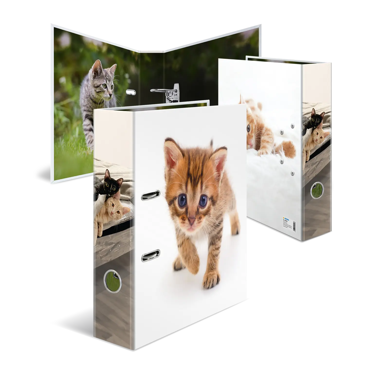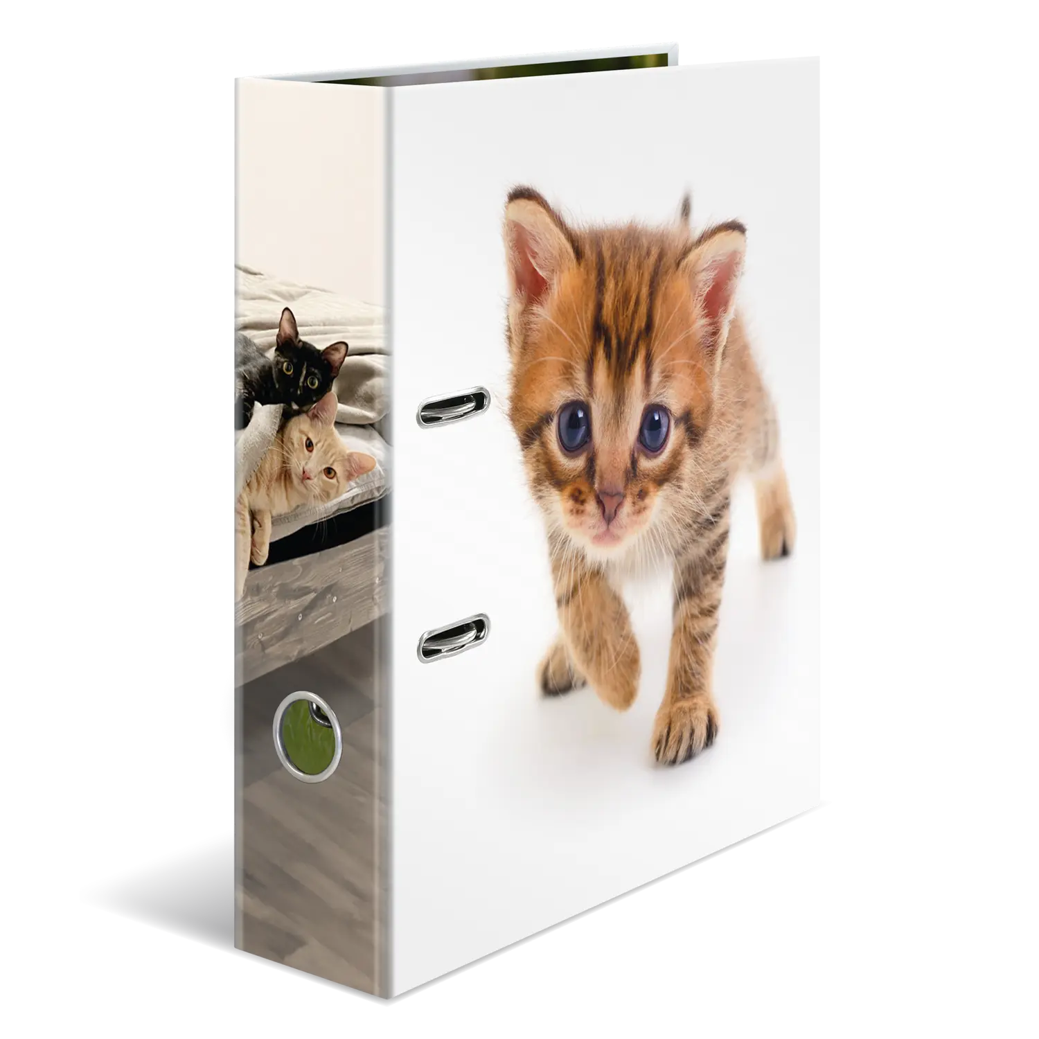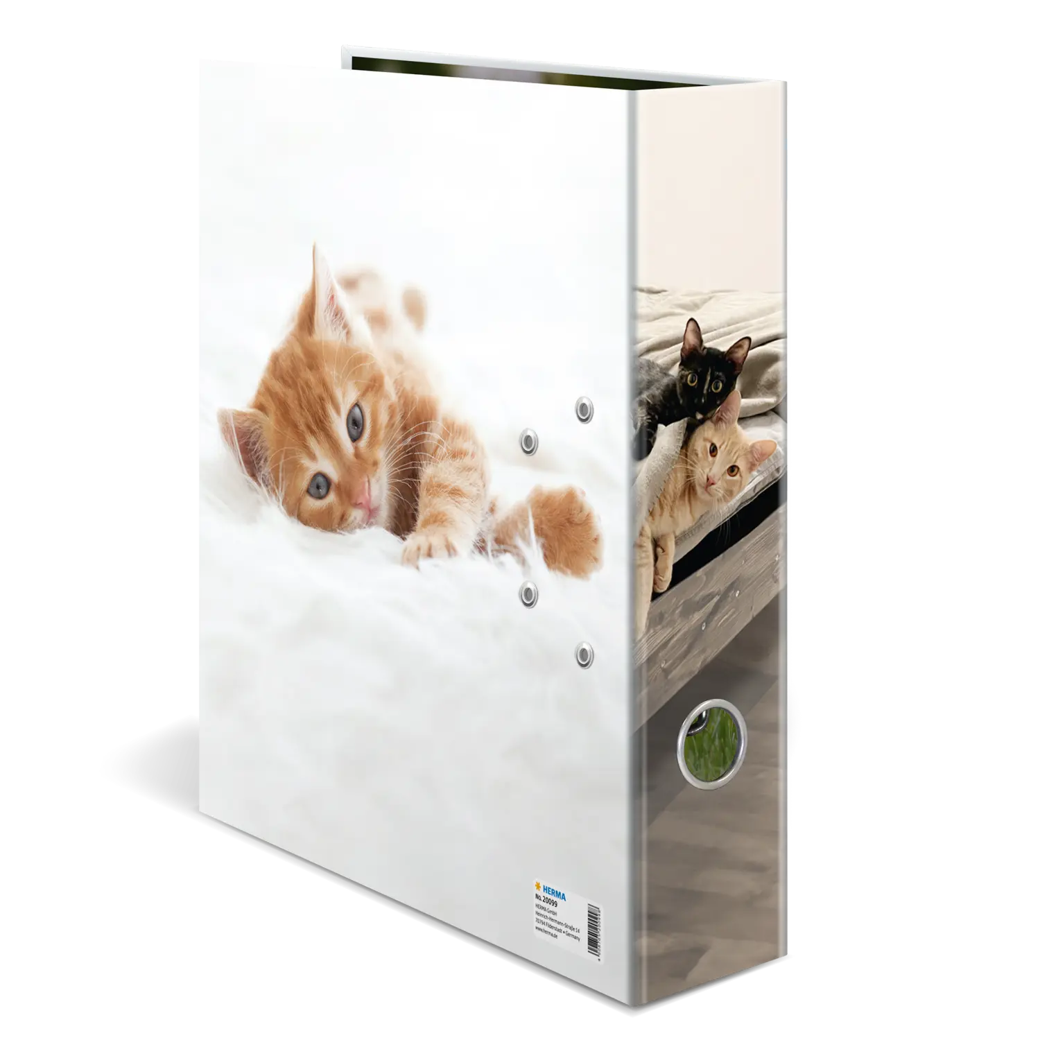 Het nieuwe motief katten uit de serie "Lievelingsdieren" van HERMA is perfect voor kattenliefhebbers die graag uiting willen geven aan hun passie voor deze prachtige dieren. De liefdevol vormgegeven ordners f leuren je werkplek op kantoor of thuis op en maken je dagelijkse werkdag een stukje leuker. Gemaakt van robuust karton en zorgvuldig afgewerkt, bieden ze een ideale bewaarplek voor belangrijke documenten. Met een stevig hefboommechaniek en aansprekende binnenprint zijn deze ordners niet alleen praktisch, maar ook een echte blikvanger op elk bureau of in de kast. De charmante kattenmotieven inspireren en laten het enthousiasme voor deze knuffelige vriendjes zien. Een persoonlijke lievelingsdier ordner zorgt ervoor dat met plezier organiseren en overzicht scheppen een fluitje van een cent wordt.