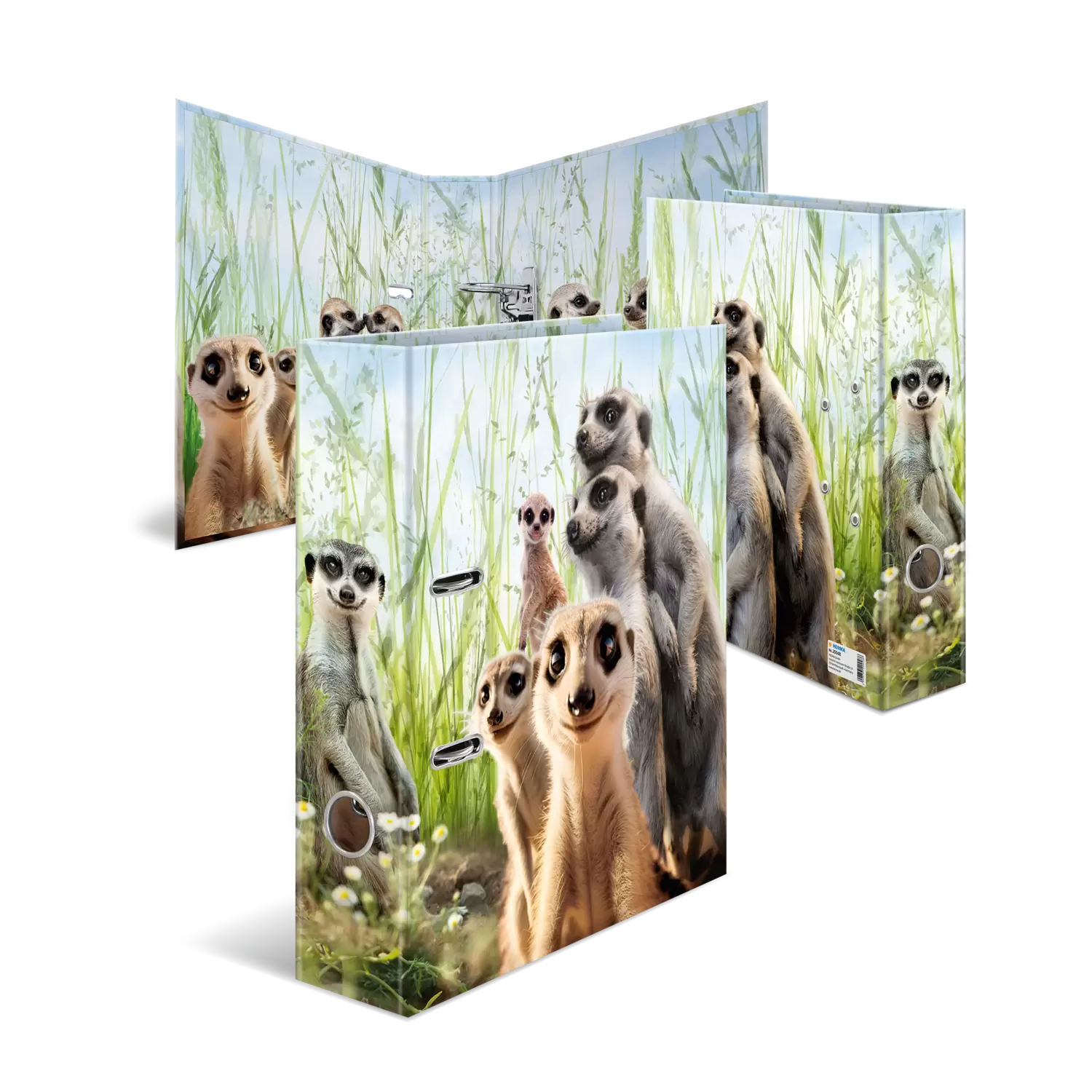 Deze ordner met diermotieven met kleurige binnendruk is uitstekend geschikt voor alle dierenliefhebbers die orde en uitstraling graag met elkaar willen verbinden. De vrolijke HERMA ordner voor DIN A4-formaat heeft een onopvallende achtergrond met vachttekening. Wakker kijken ze je aan, de stokstaartjesmeute, de teamworkers met perfecte werkverdeling. Met een rugbreedte van 70 mm biedt de brede ordner met binnendruk alle ruimte voor belangrijke documenten en geperforeerde paperassen voor thuis, school, universiteit of kantoor. Waar er ook orde moet worden geschapen, deze ordner is absoluut een goede keus. Met het stevige hefboommechaniek en de praktische klem kunnen alle papieren eenvoudig worden opgeborgen, tevoorschijn getoverd, opnieuw worden geschikt en bij elkaar bewaard worden om de beschikbare ruimte zo efficiënt mogelijk te benutten. Het vingergat aan de achterkant zorgt ervoor dat de ordner met slechts één greep supergemakkelijk uit de kast kan worden gepakt. Het stevige karton waar de themamap van is gemaakt, is milieuvriendelijk en een optimaal geschikt materiaal om je belangrijkste stukken consequent op te bergen. Als er eenmaal een geschikte ordnerstructuur is gecreëerd, worden in de toekomst de documenten als vanzelf goed opgeborgen en indien nodig binnen seconden teruggevonden. Zo kan kostbare tijd en geduld worden bespaard - u zult verbaasd zijn hoe veel tijd u bespaart.