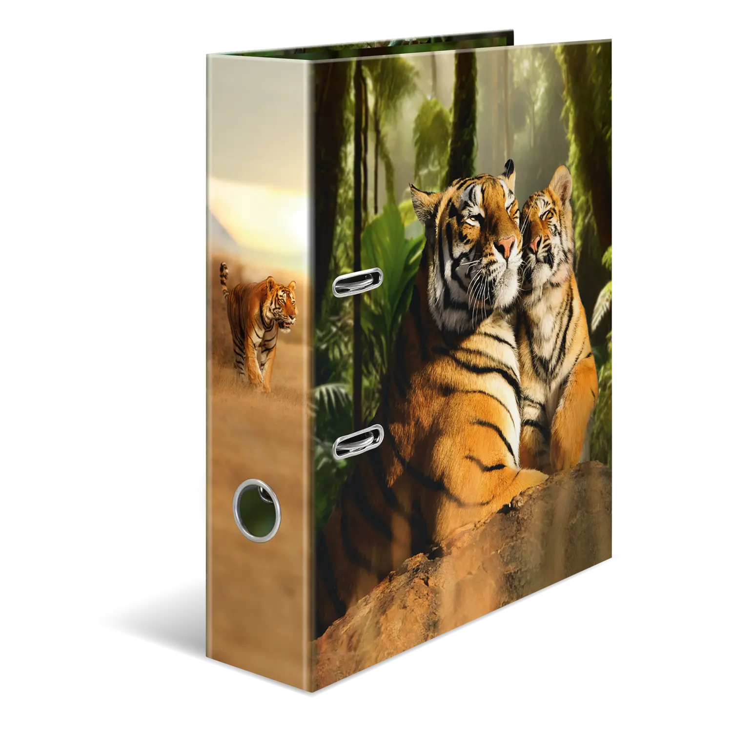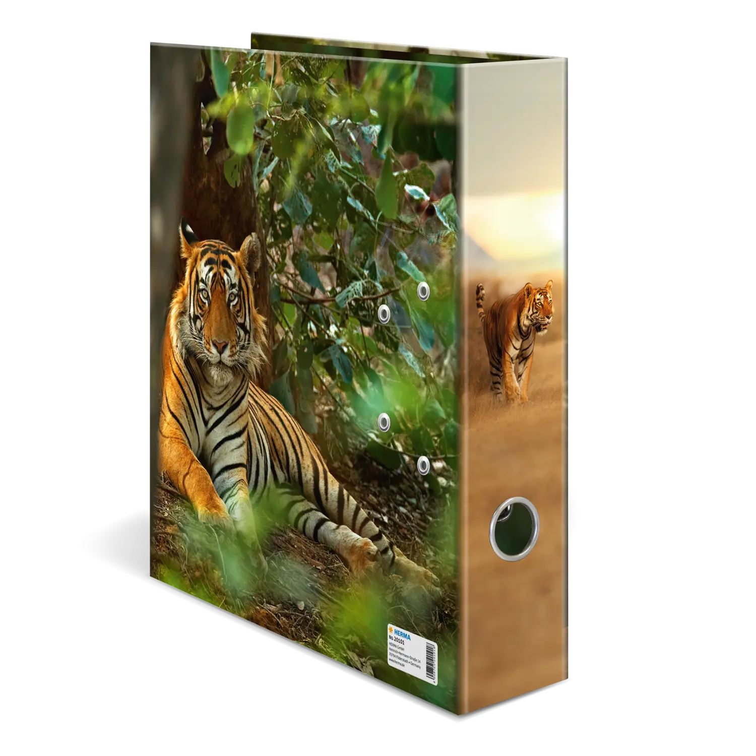 De fascinerende tijgermotieven uit de serie "Lievelingsdieren" van HERMA bieden een ideale mogelijkheid om het scheppen van orde met een vleugje avontuur te verbinden. Deze unieke ordners presenteren de imposante élégance en wildheid van de tijgers, terwijl ze majesteitelijk door de jungle schrijden. Gemaakt van extra stevig karton en hoogwaardig afgewerkt, bieden de ordners niet alleen een optimale bewaarplek voor belangrijke documenten, maar zijn ook een echte blikvanger op elk bureau of in de kast. Het robuuste hefboommechaniek zorgt ervoor dat alles goed op zijn plaats blijft. De gratie van deze indrukwekkende dieren inspireert en maakt van organiseren een avontuur. Een persoonlijke lievelingsdier ordner maakt een opgeruimde werkplek mogelijk die zowel praktisch alsook inspirerend is.