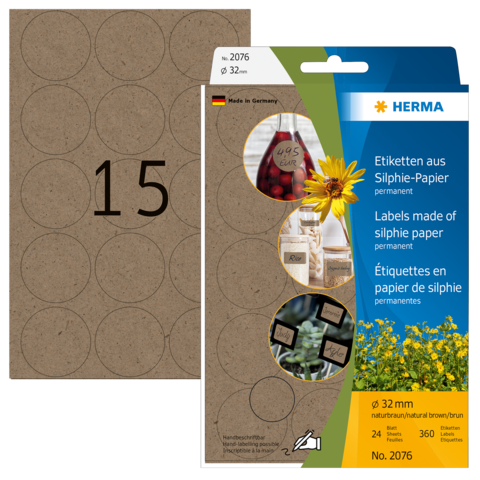 Het speciale papier gemaakt van de koningin van de ecologische gewassen - de Donau Silphie. Habitat voor bijen, voor energiewinning, ideale CO2-vastlegging en een meerwaarde voor het ecosysteem. Een bijdrage aan duurzaamheid. FSC® Mix Credit-gecertificeerd. Teelt in Duitsland, korte transportwegen, minder CO2-uitstoot. Moderne kraftpapier-look, van ten minste 35% silphie-vezels. Geschikt voor direct contact met levensmiddelen. Etikettenpapier recyclebaar via het oud papier. Van etiket tot verkoopverpakking: rondom duurzaam. Voor handbeschrijving med alle schrijfmiddelen en schrijfmachines. Niet geschikt voor PC printers.