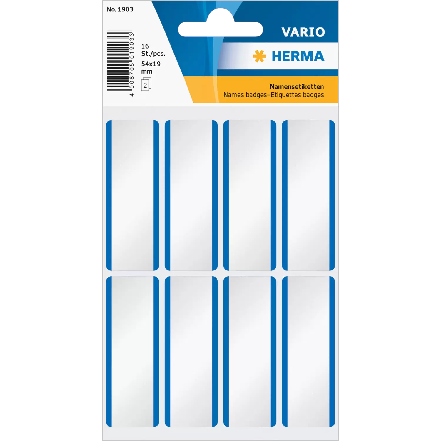 Naam etiketten 54x19 mm wit/blauw strepen verwijderbaar acetaat-zijde 16 st.