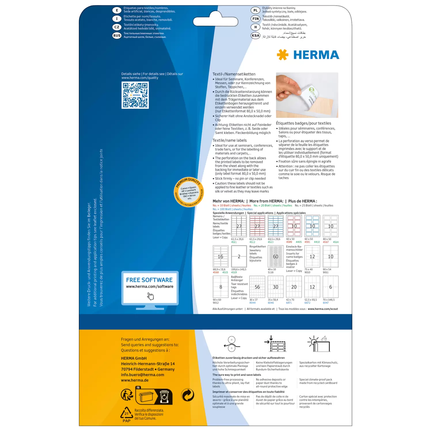 Naam/textieletiketten, verwijderbaar, A4, 80 x 50 mm, wit, scheidbaar, acetaatzijde, te bedrukken
