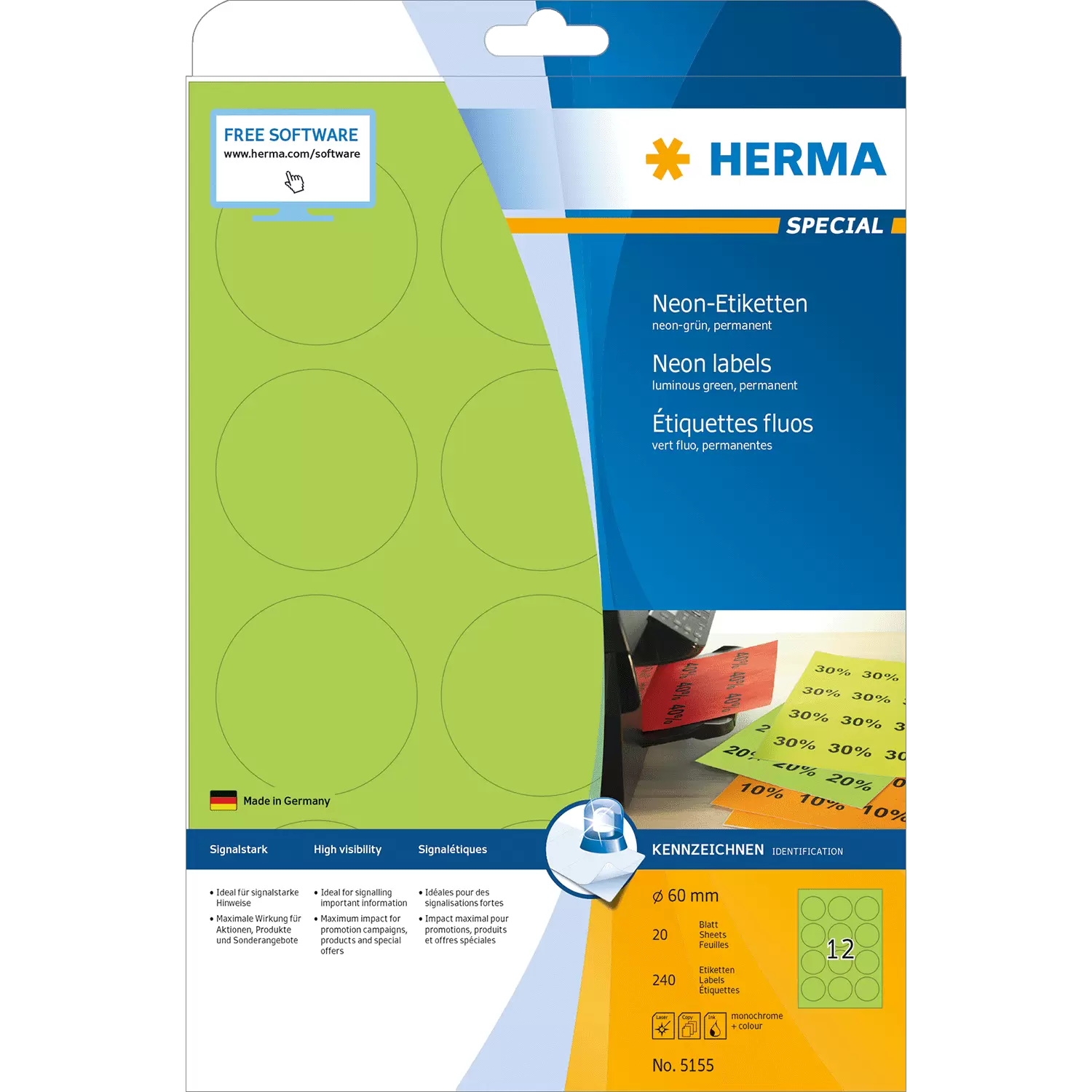 - Papieretiketten in neonkleur, voor opvallende informatie met maximaal effect