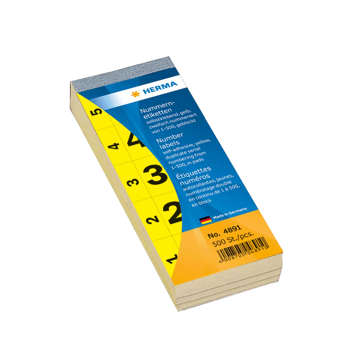 Nummer blok zelfklevend 1-500 geel 28x56 mm