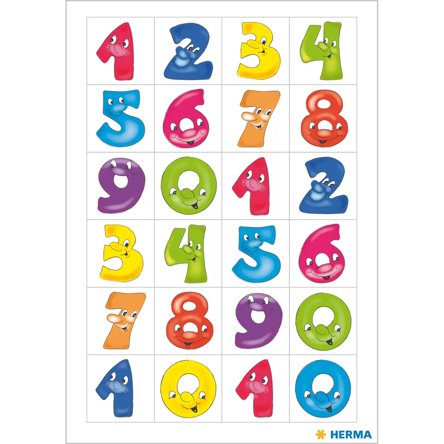 vrolijk gekleurde stickers met de cijfers van nul tot negen, in totaal 48 stickers op twee vellen, vinden groot en klein leuk, gemaakt van hoogwaardig papier, bijzonder goed geschikt voor het versieren, ook om te sparen en ruilen, permanent hechtend en zelfklevend op veel oppervlakken, eenvoudig van het papier af halen en opplakken