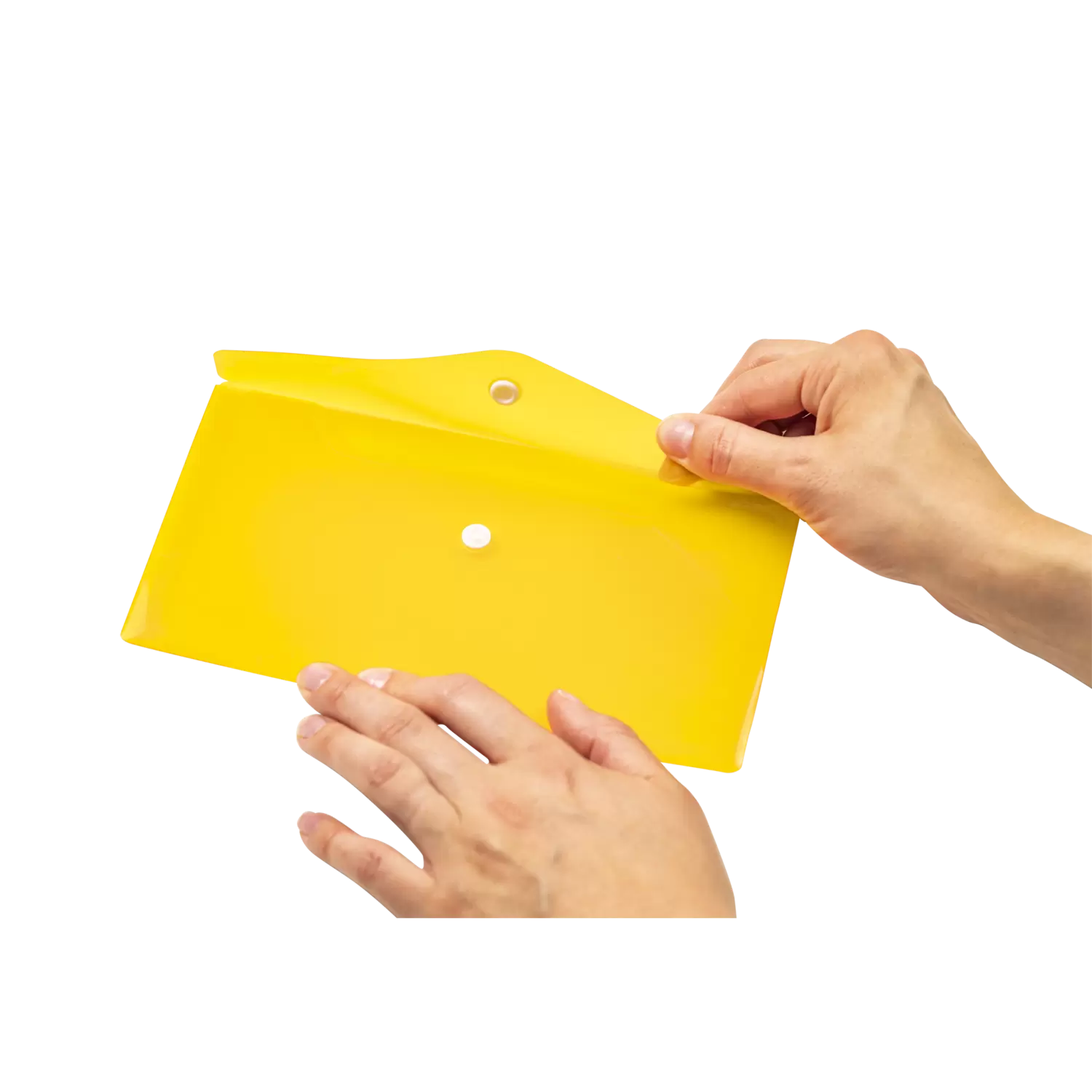Het praktische HERMA opbergmapje van het formaat DIN lang (22 x 12 cm) in geel is de veelzijdige organizer voor onderweg, thuis, op het werk, in school en nog veel meer. Het handzame mapje is gemaakt van robuust transparant polypropyleen en daardoor ongevoelig voor vuil en vocht. Zo blijven bonnetjes, brieven, reisdocumenten, tekeningen of kleinere gebruiksvoorwerpen schoon en netjes bij elkaar.