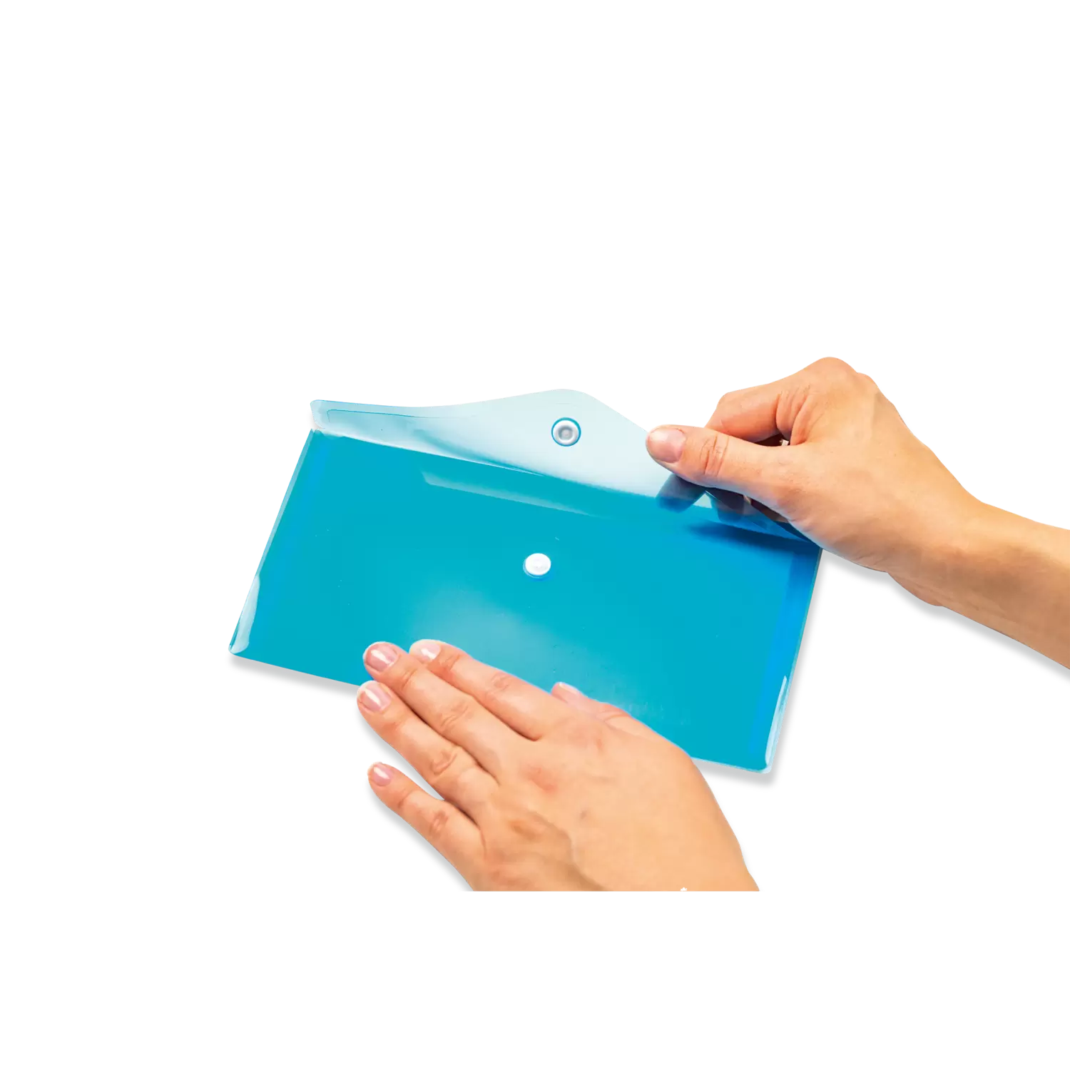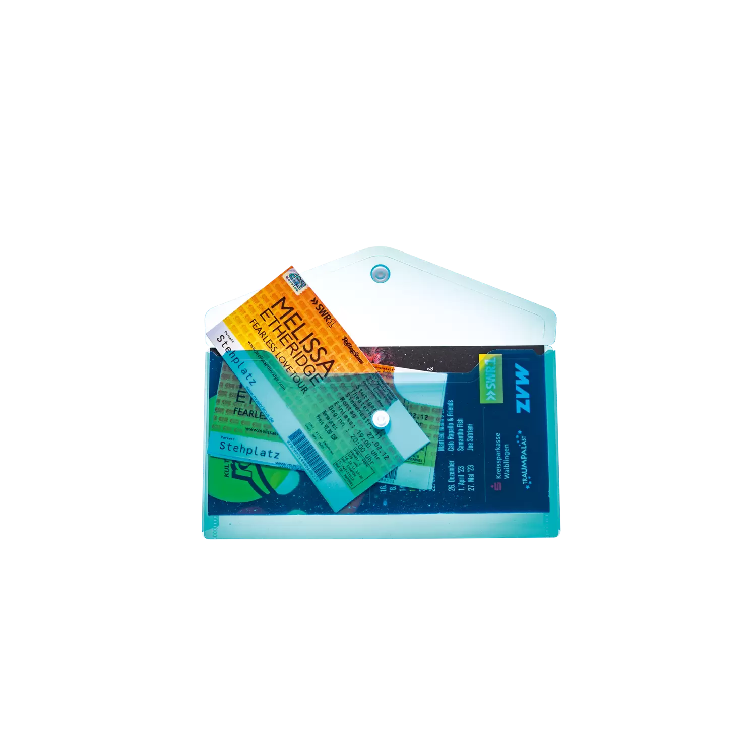 Het praktische HERMA opbergmapje van het formaat DIN lang (22 x 12 cm) in lichtblauw is de veelzijdige organizer voor onderweg, thuis, op het werk, in school en nog veel meer. Het handzame mapje is gemaakt van robuust transparant polypropyleen en daardoor ongevoelig voor vuil en vocht. Zo blijven bonnetjes, brieven, reisdocumenten, tekeningen of kleinere gebruiksvoorwerpen schoon en netjes bij elkaar.