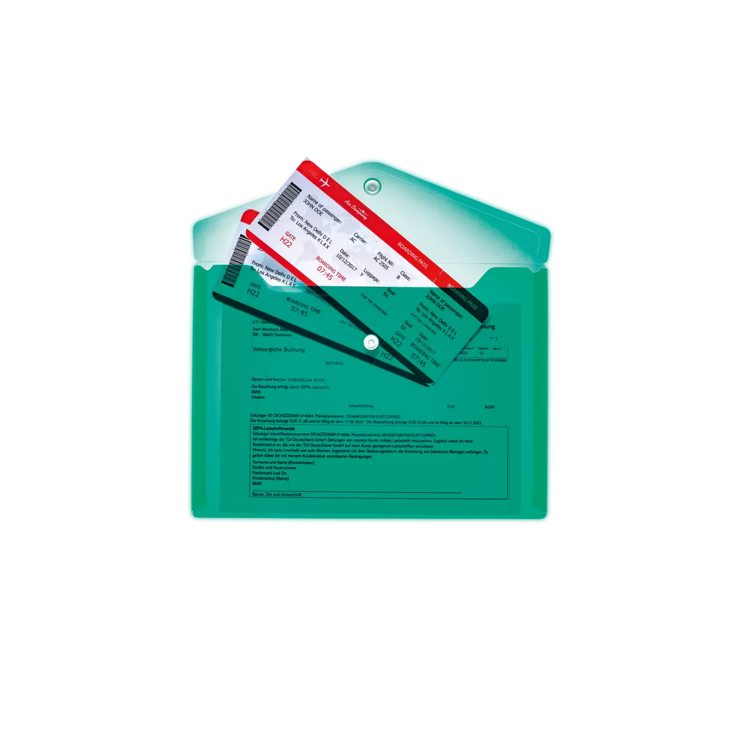 Het praktische HERMA opbergmapje van het formaat DIN A5 (25 x 18 cm) in donkergroen is de veelzijdige organizer voor onderweg, thuis, op het werk, in school en nog veel meer. Het handzame mapje is gemaakt van robuust transparant polypropyleen en daardoor ongevoelig voor vuil en vocht. Zo blijven bonnetjes, brieven, reisdocumenten, tekeningen of kleinere gebruiksvoorwerpen schoon en netjes bij elkaar.