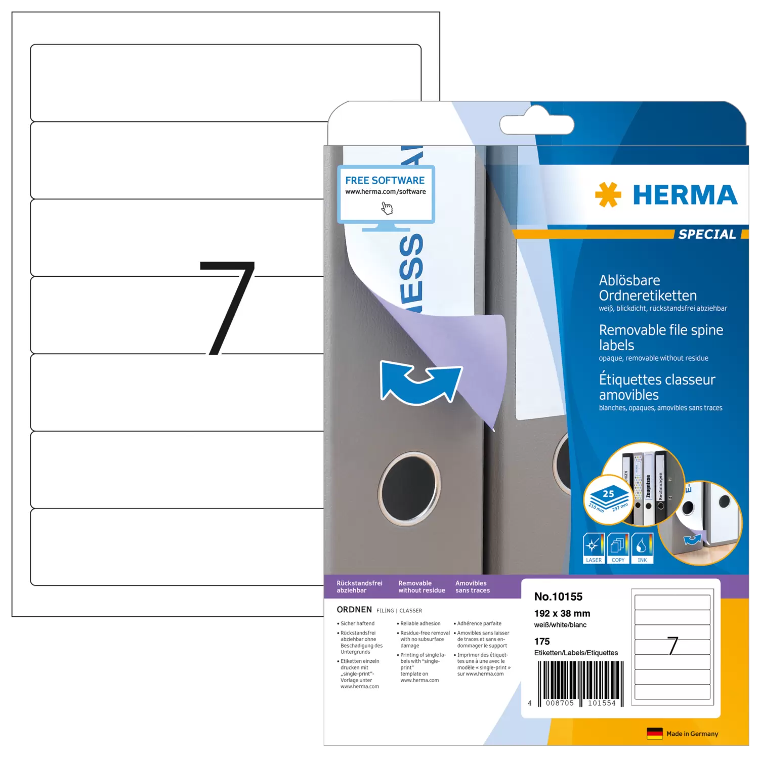 Verwijderbare ordneretiketten, A4, 192 x 38 mm, wit, ondoorzichtig