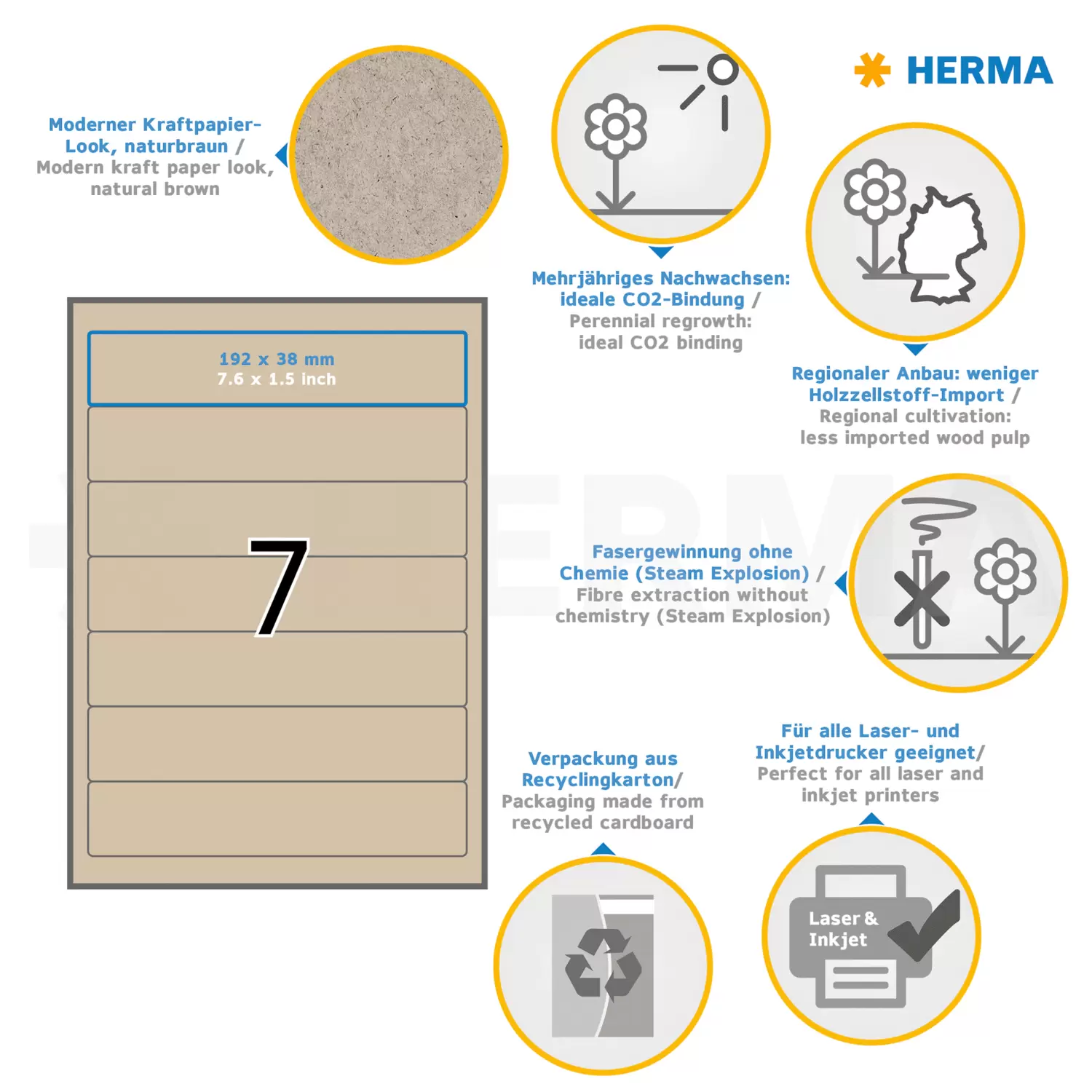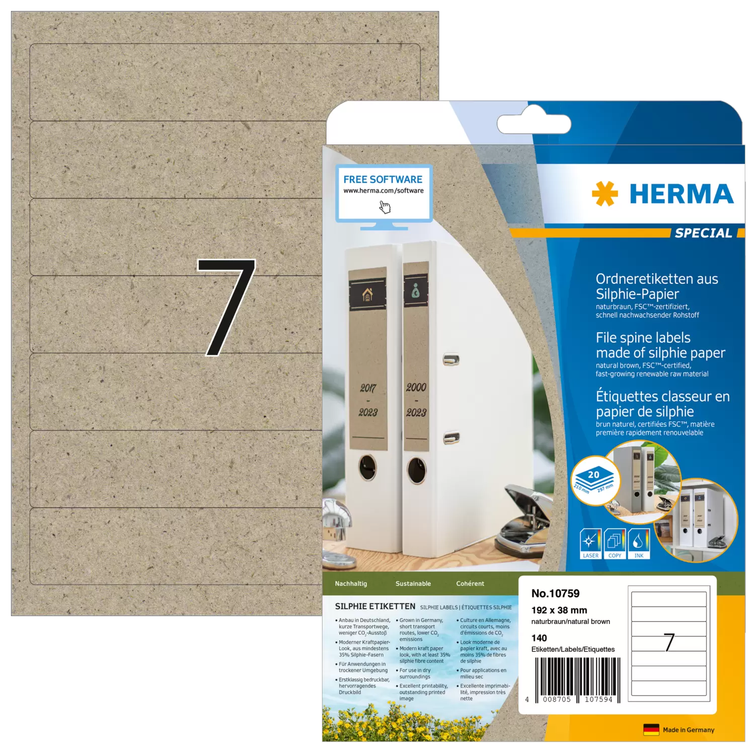 Ordneretiketten, A4, 192 x 38 mm, naturel bruin, silphie-papier