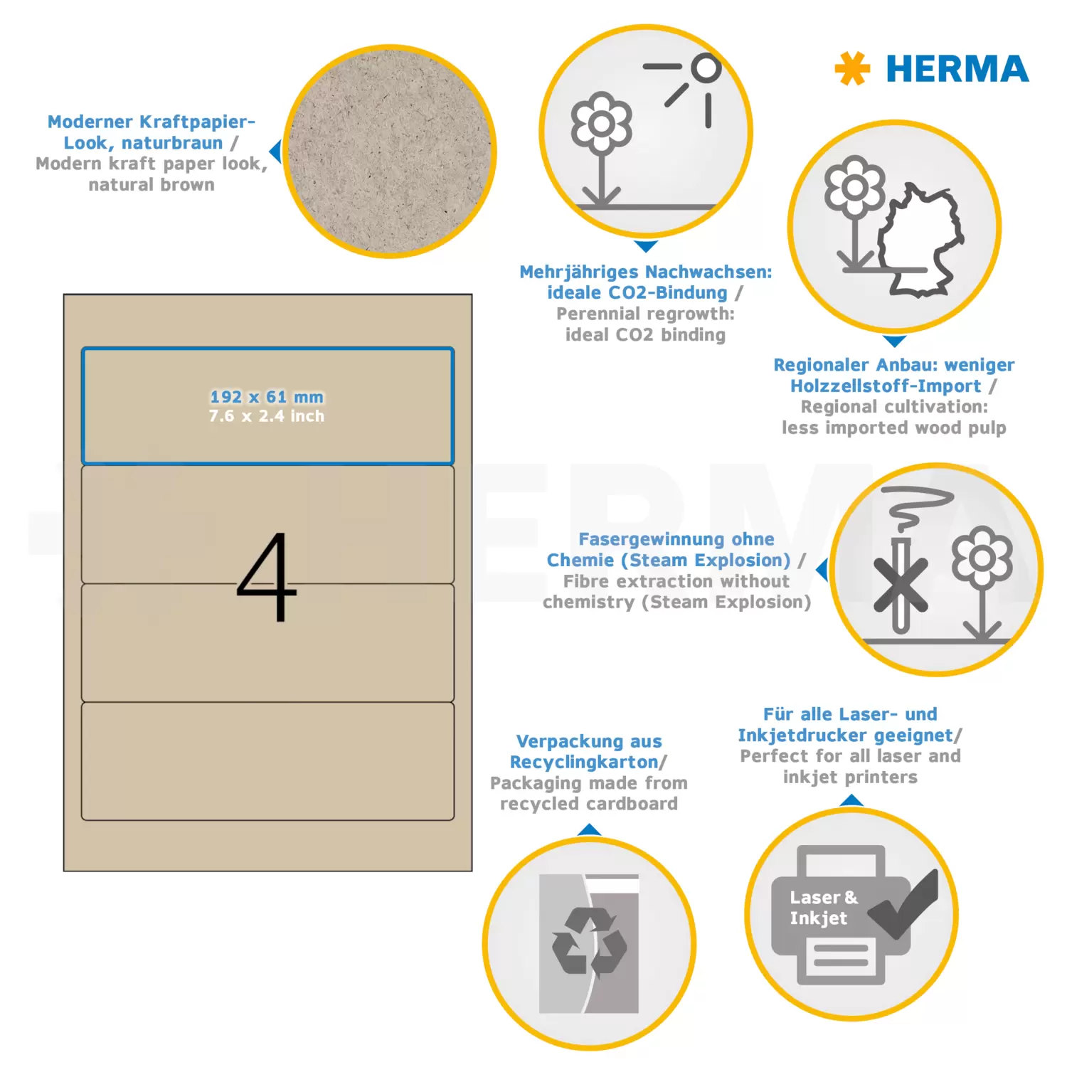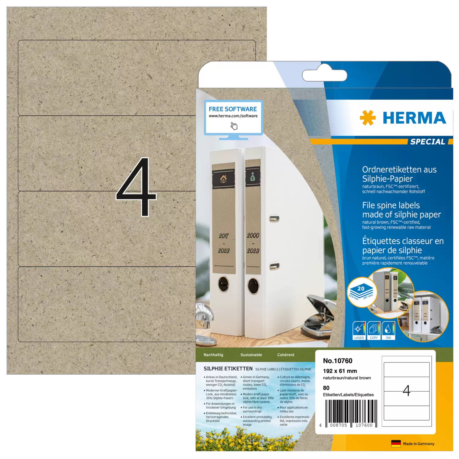 Ordneretiketten, A4, 192 x 61 mm, naturel bruin, silphie-papier